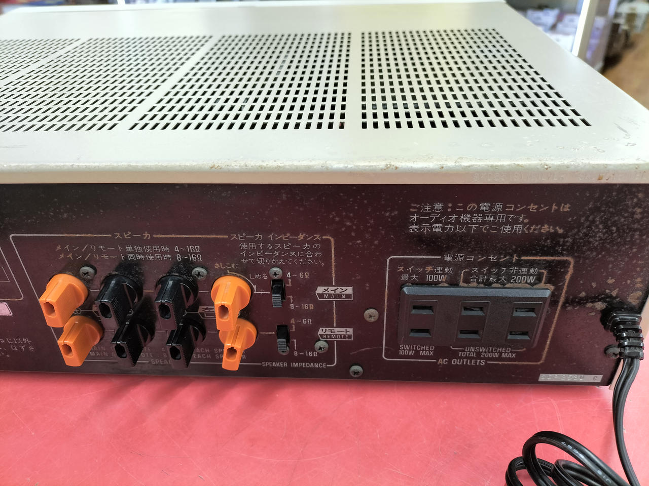 20kHz):80W+80W(4Ω、0.007%)、80W+80W(8Ω、0.003%) |