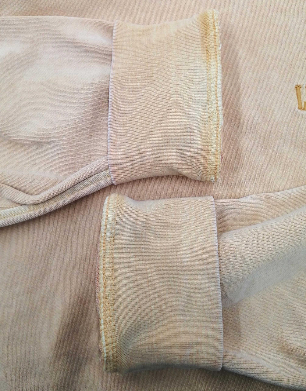 全体的な色褪せと、袖に汚れ、フードに穴がありますが、まだまだお使いいただけます。 |
