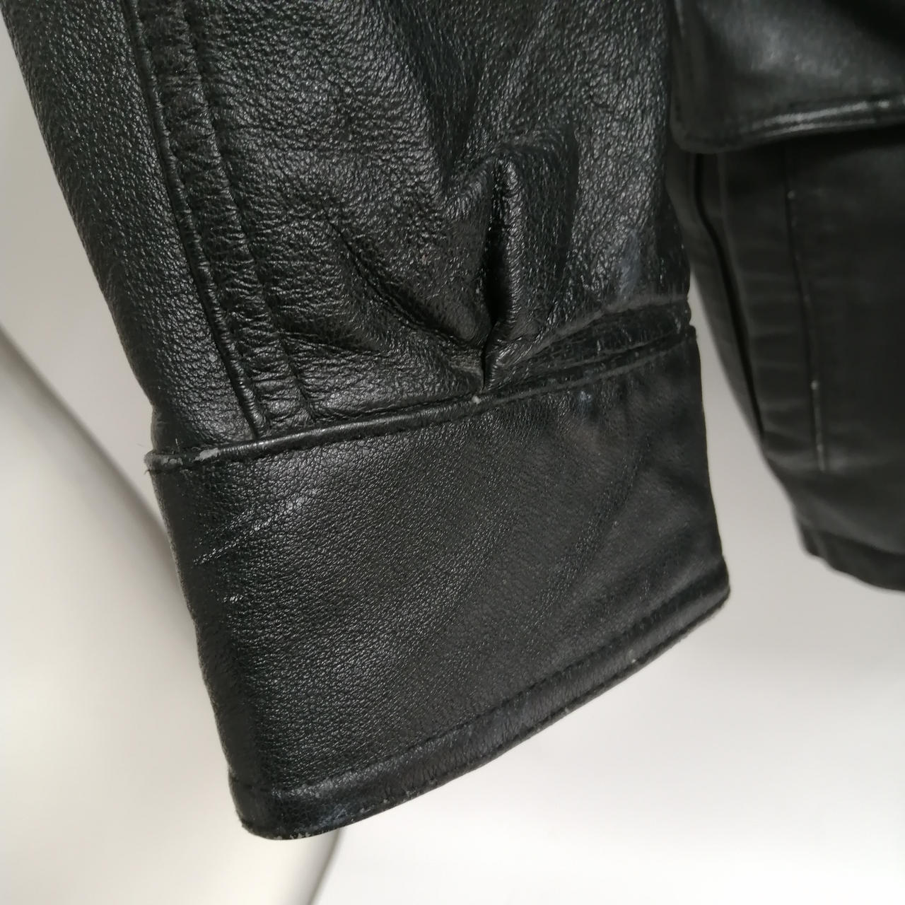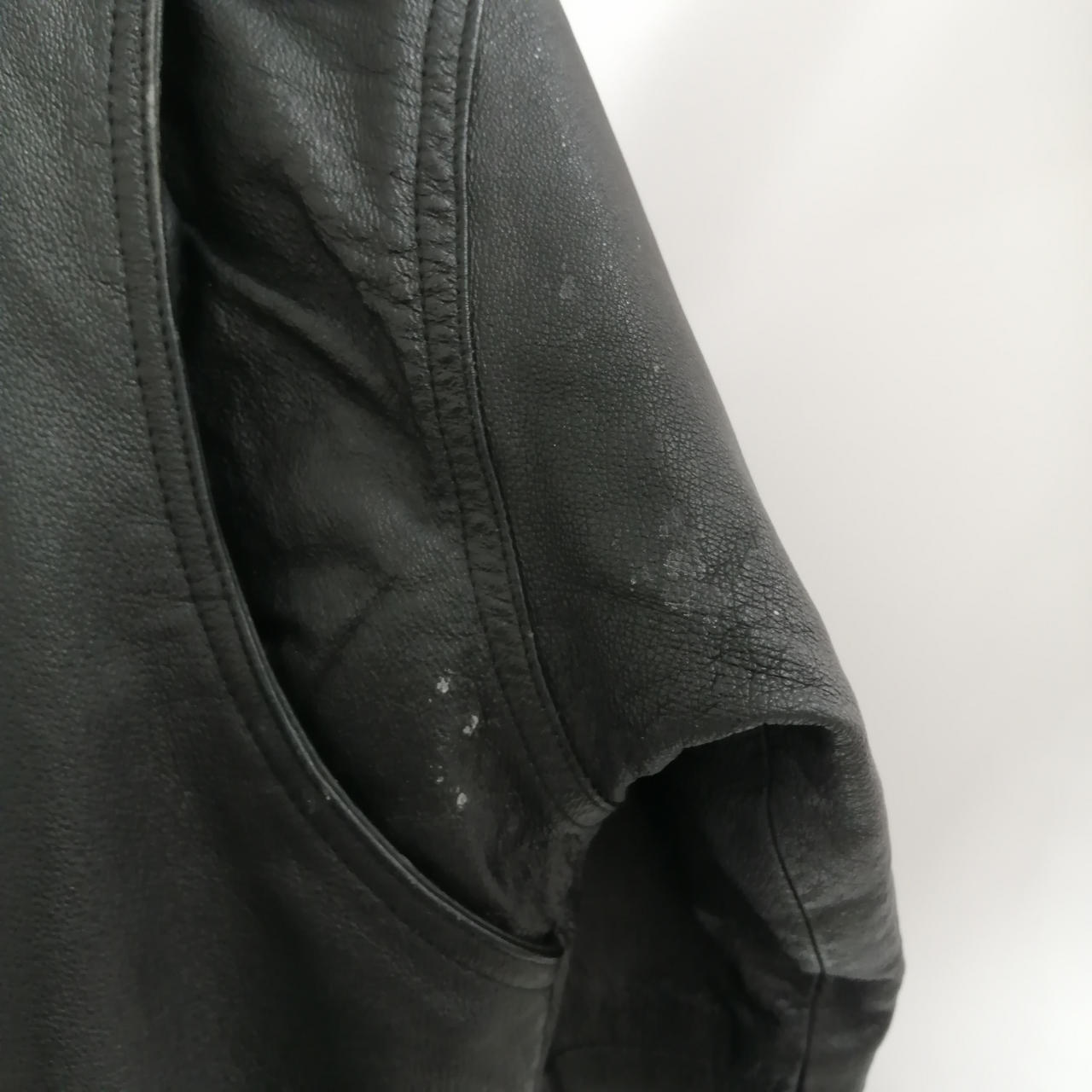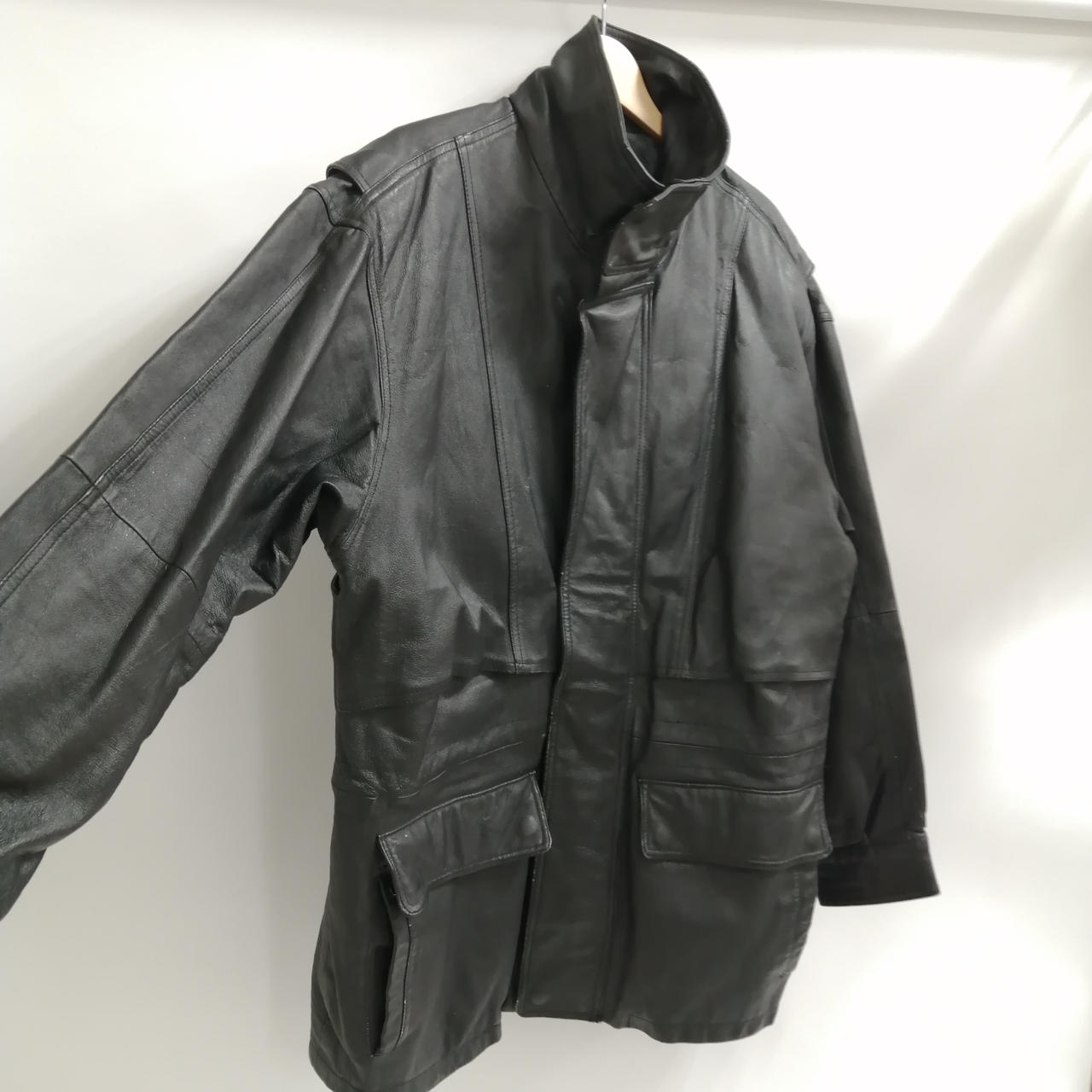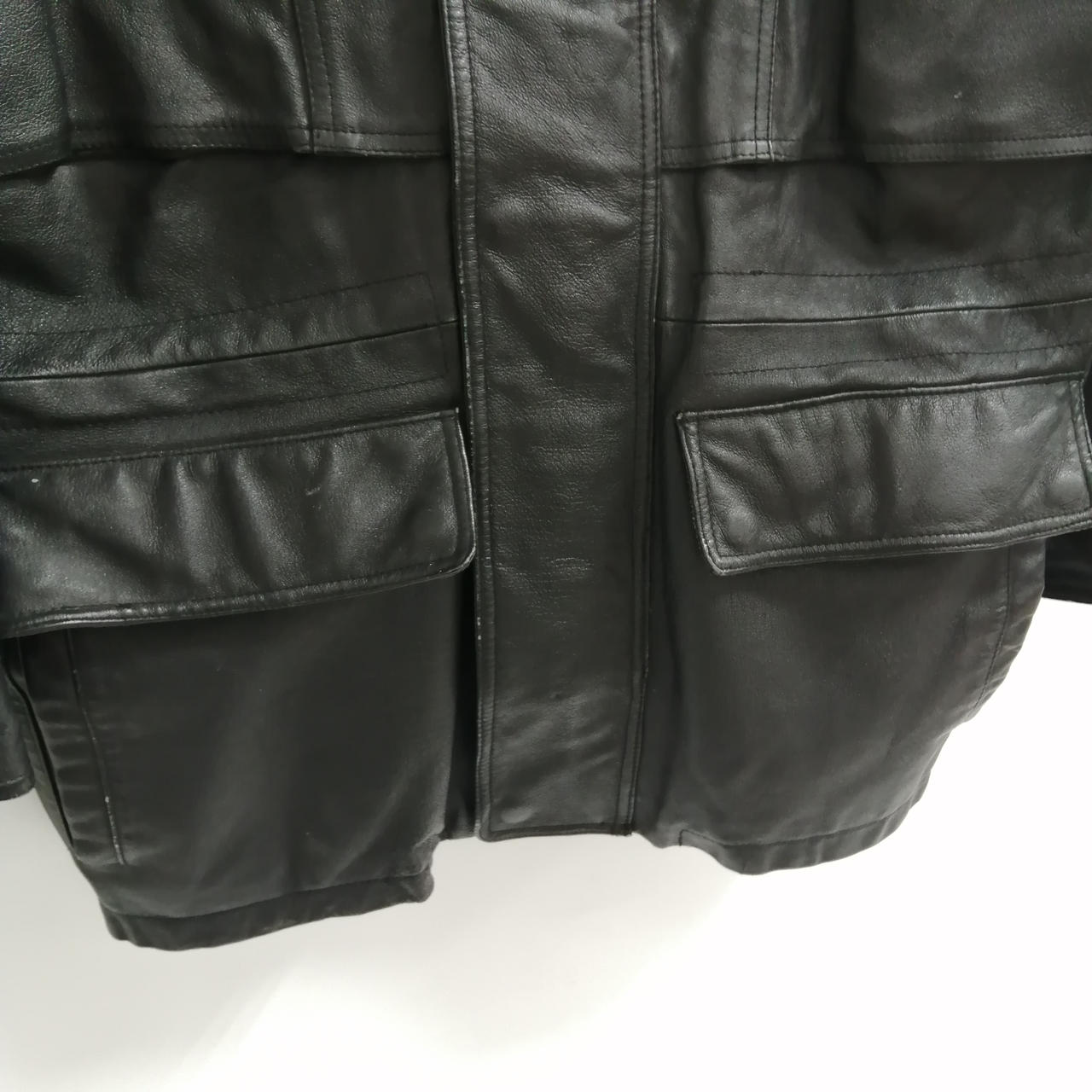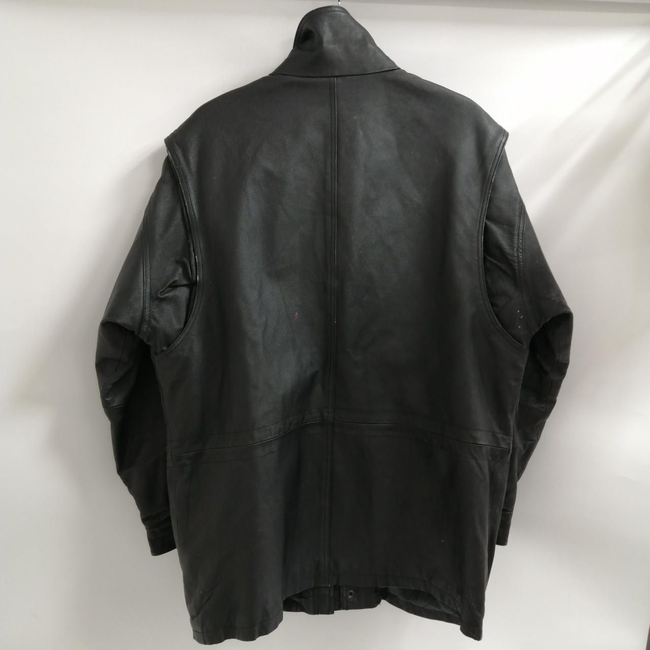 RIVER TRADER レザーハイネックハーフコート M ブラック 全体的に使用感があるお品物です。スレやダメージが全体的に見受けられます。あくまでも中古品になりますので画像をよくご参照下さい。また店頭にて展示販売しておりますので状態が変化する場合がございます。あらかじめご了承ください。 |