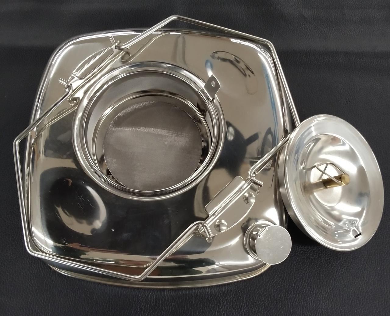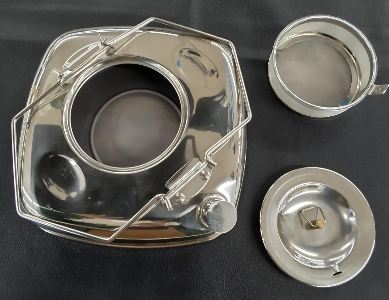 薄型でシンプルなデザインです。ストレーナー付きでコーヒーやお茶の煮出しに最適です。
