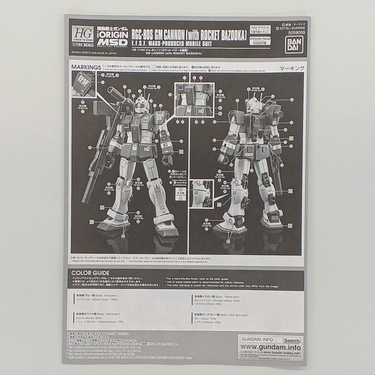 1/144 HG RGC-80S ジム・キャノン(ロケット・バズーカ装備) 機動戦士ガンダム THE ORIGIN MSD |