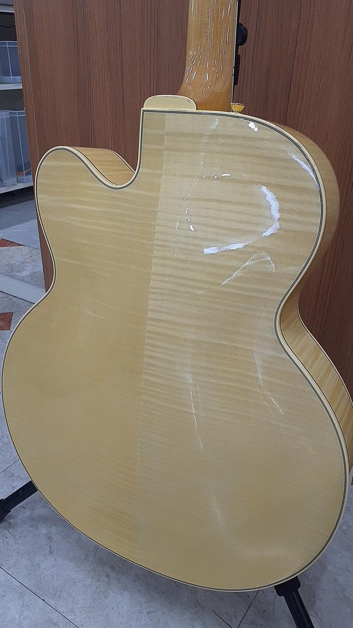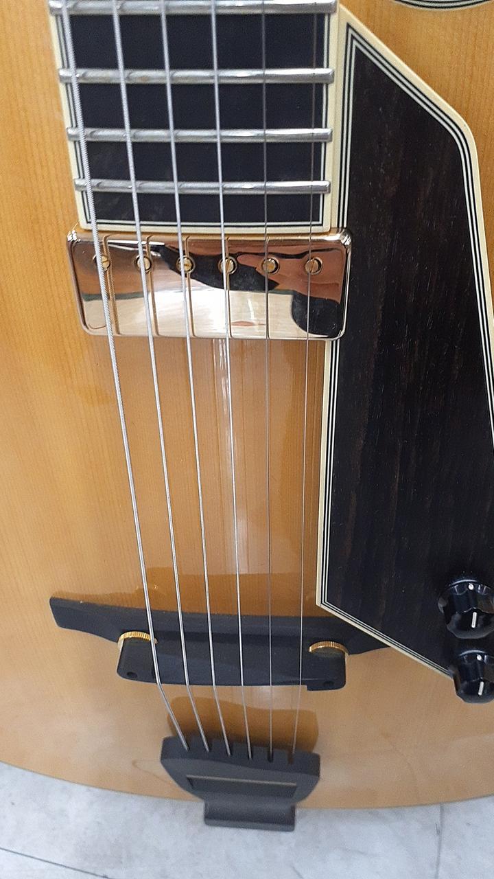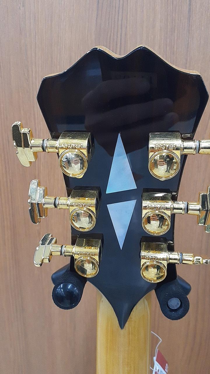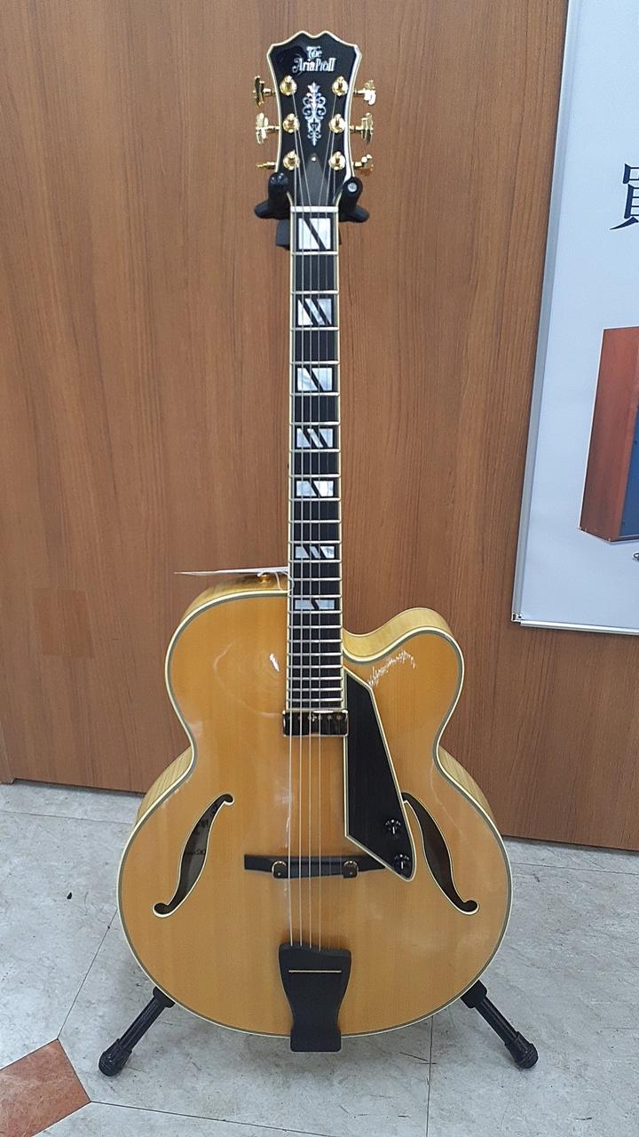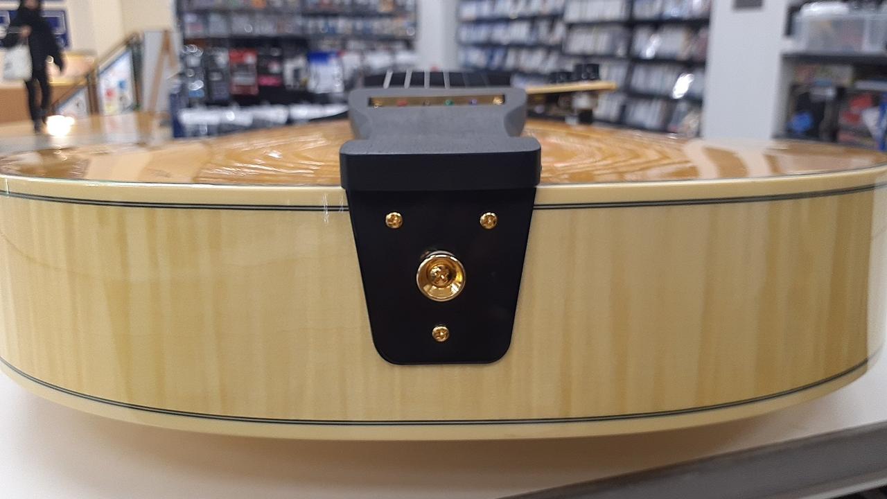 スプルース単板トップのフルアコースティックギター。ディアンジェリコ、ダキストの流れを汲むニューヨーカースタイルのトラディショナルな仕様を採用したモデルです。 国産のオリジナルフローティングピックアップを搭載し、心地よいエアー感と豊かな低音、艶やかなトーンが魅力です。