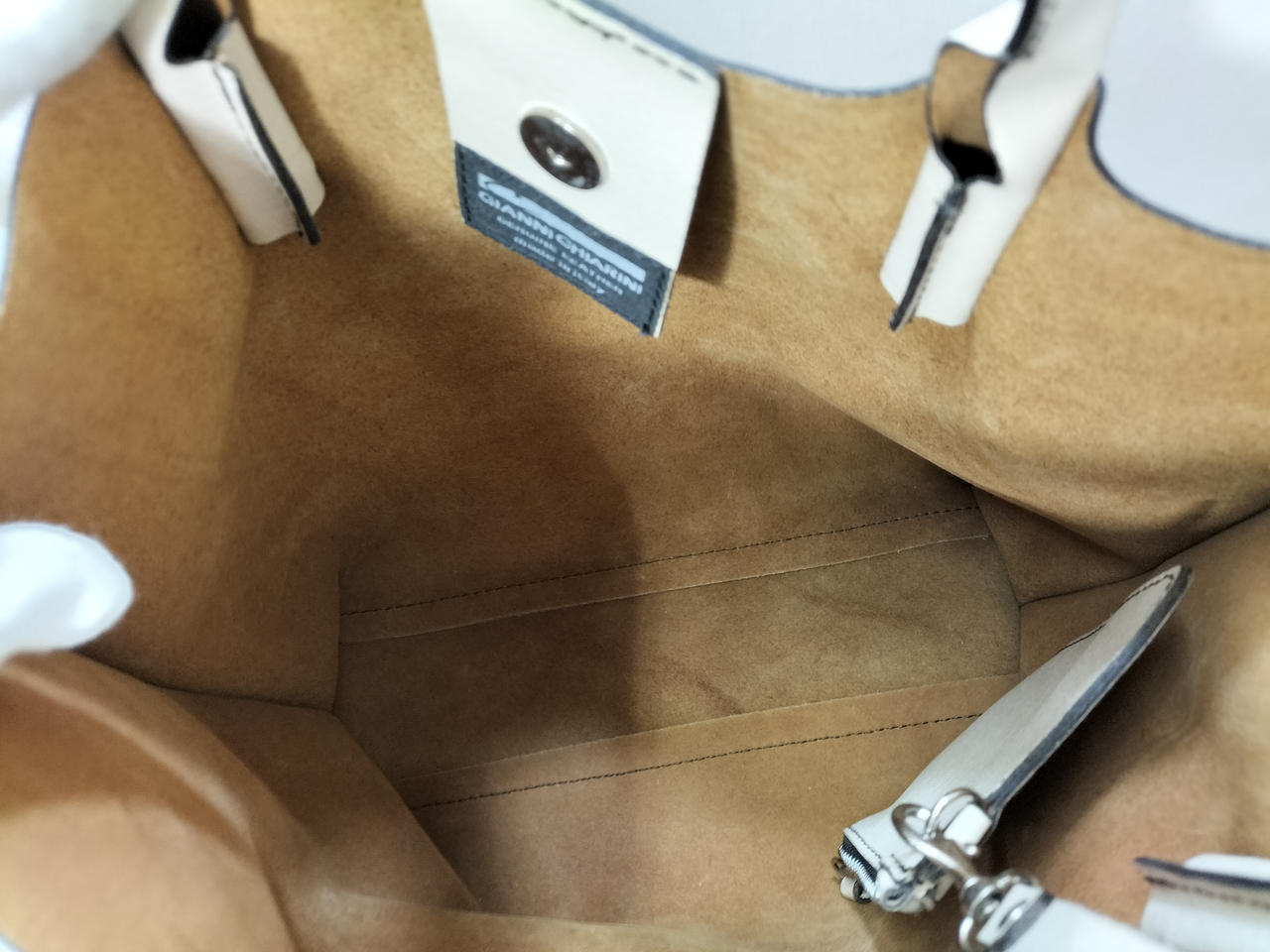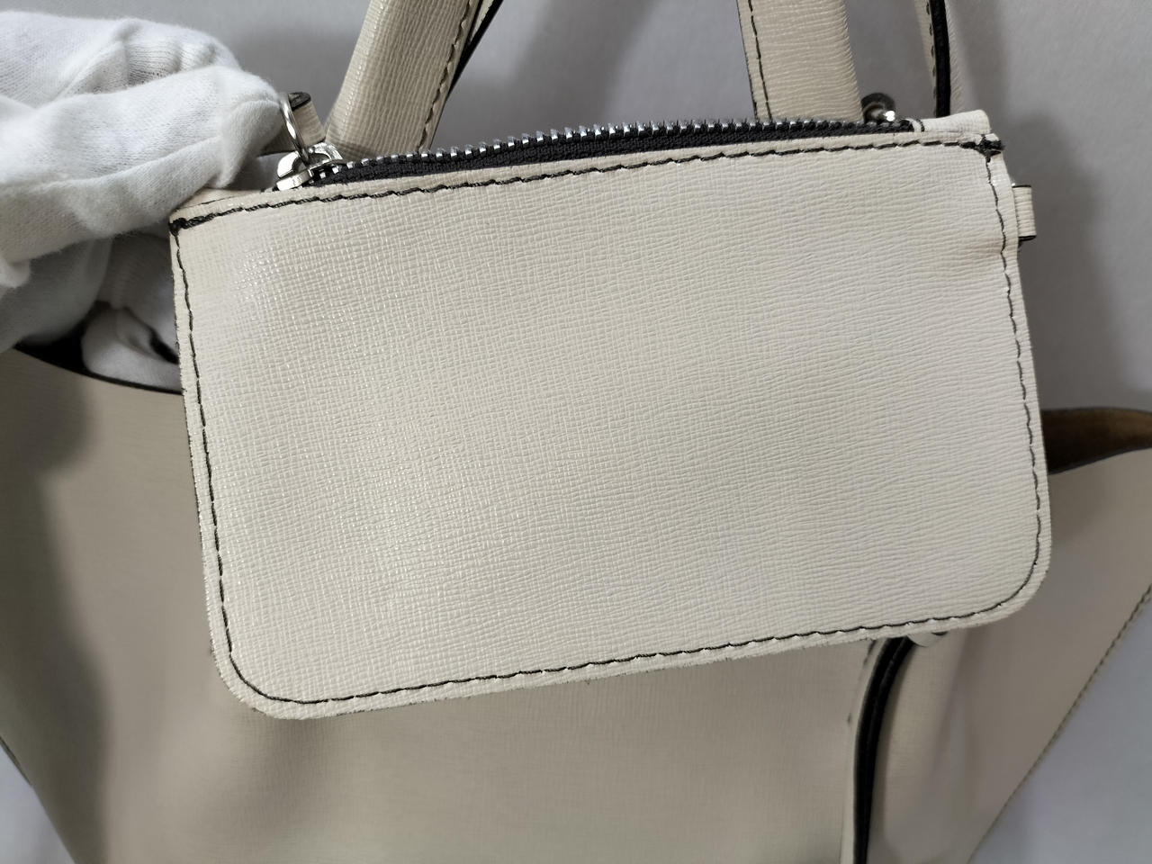 マチに変色、表面に少し汚れがございます。