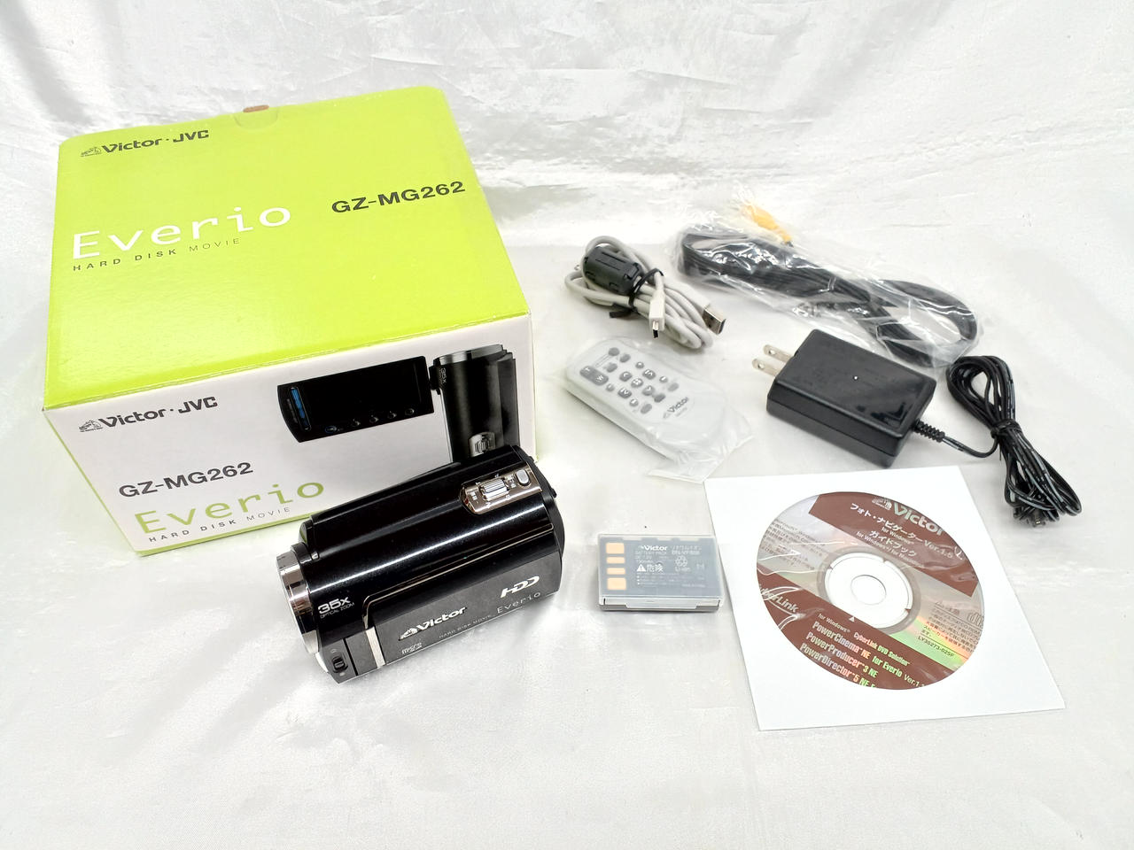 化粧箱・取扱説明書・ACアダプター・接続ケーブル・バッテリー(保証外)・リモコン・CD-ROM |