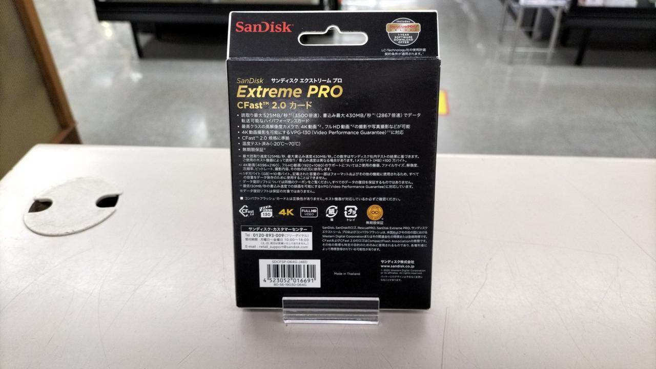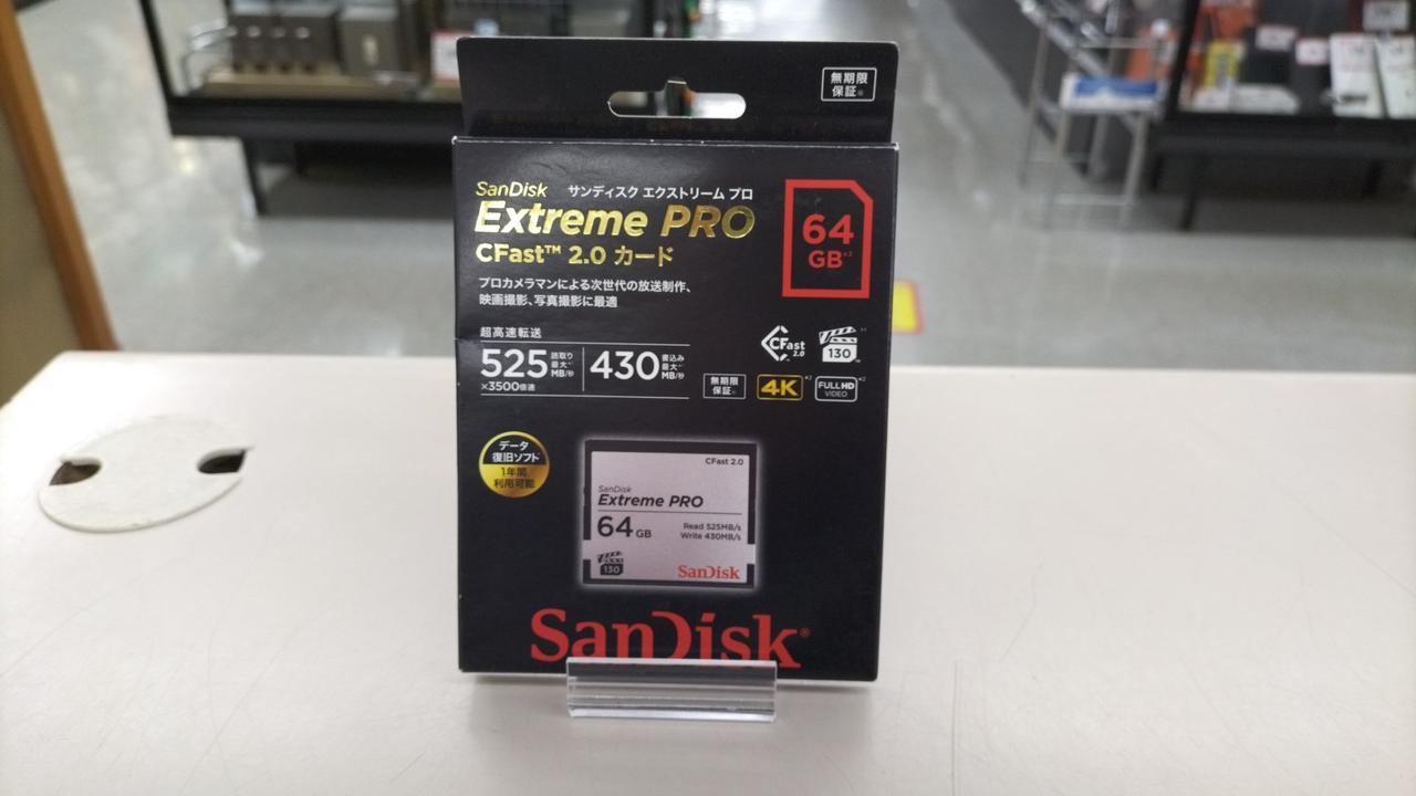 CFAST2.0 64GB 最大転送速度:読み出し525MB/秒、書き込み450MB/秒 |