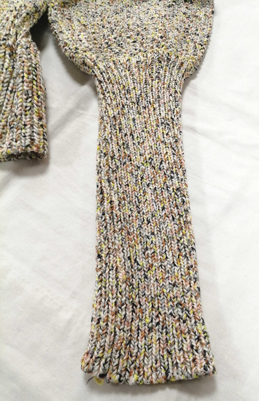 ミックス糸で編まれたデザイン性の高い1着です! |