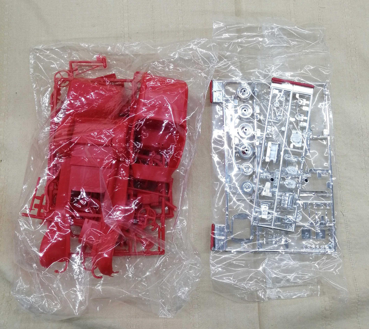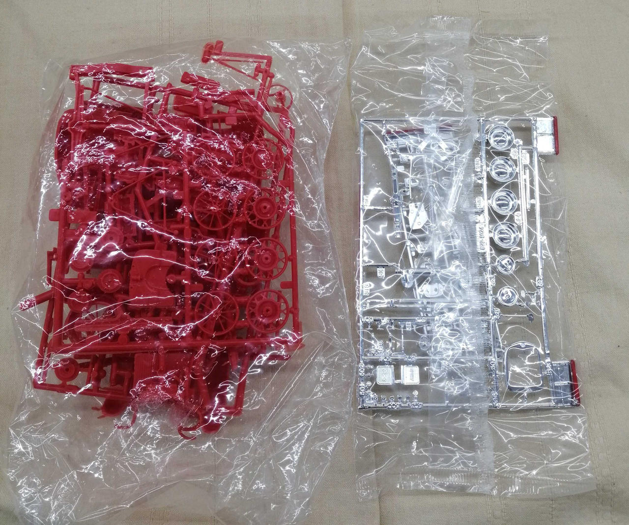 透明パーツの1つに外れがあり、小さな赤いパーツは欠損がありますが袋部分は未開封品でレアな逸品です!! |
