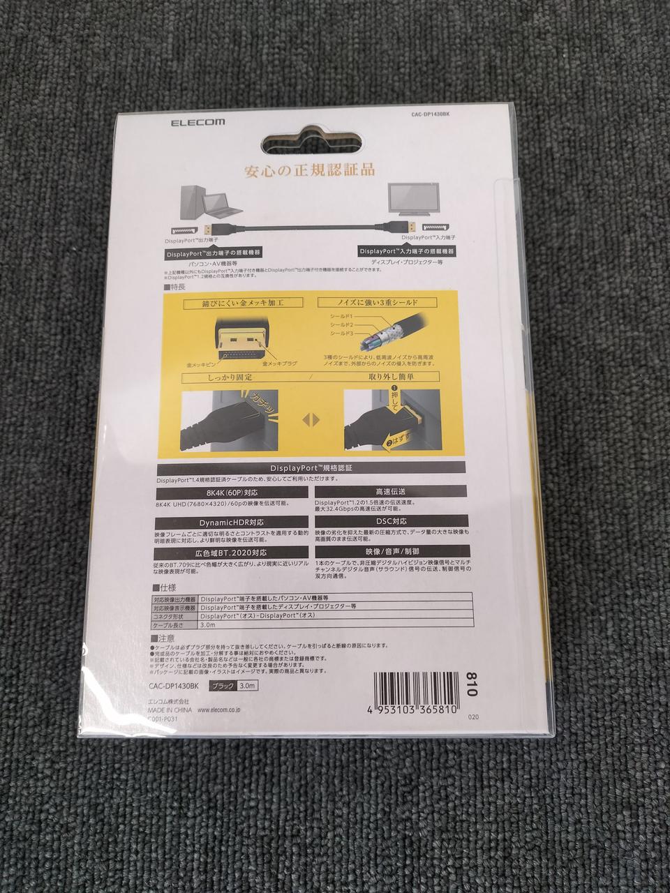 8K4K映像の出力ができる。 DisplayPort規格Ver1.4認証済みのDisplayPort(TM)ケーブル。 |