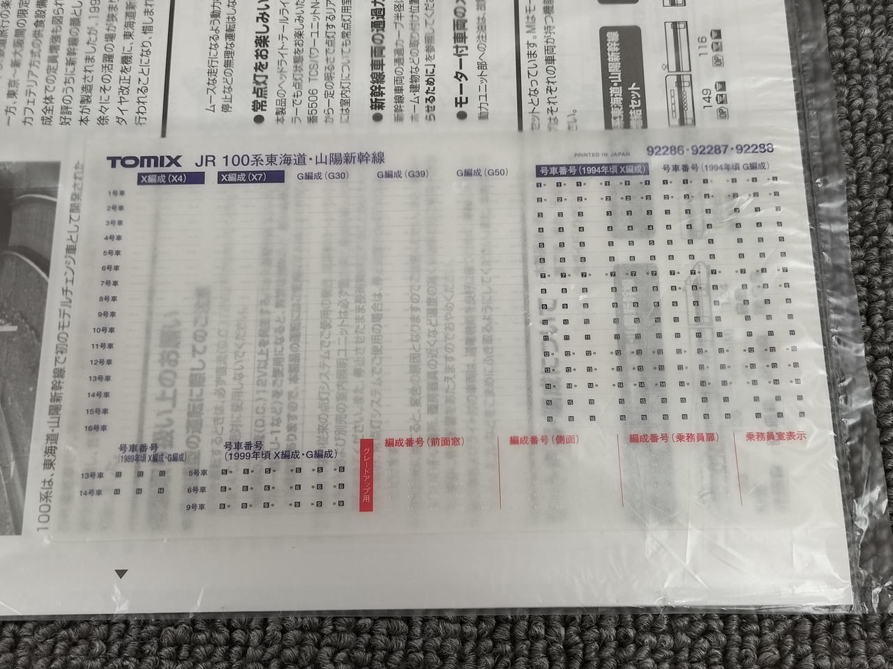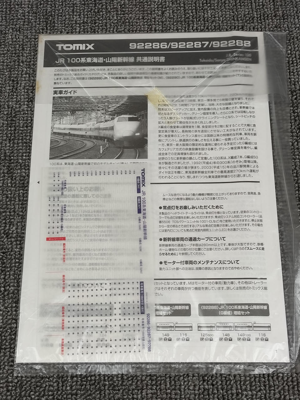 セット内訳① 92286(基本4両).92288(G編成4両) |