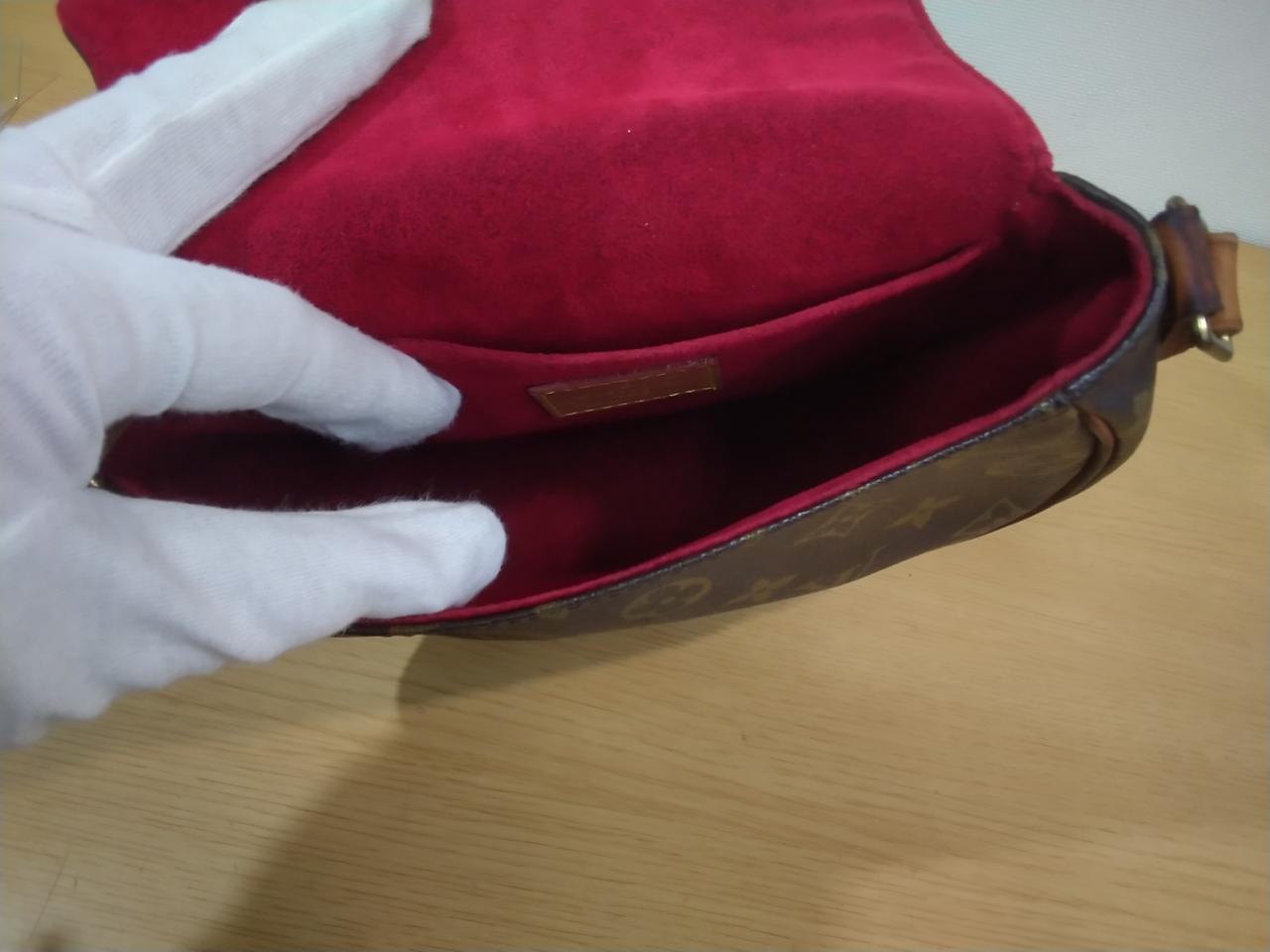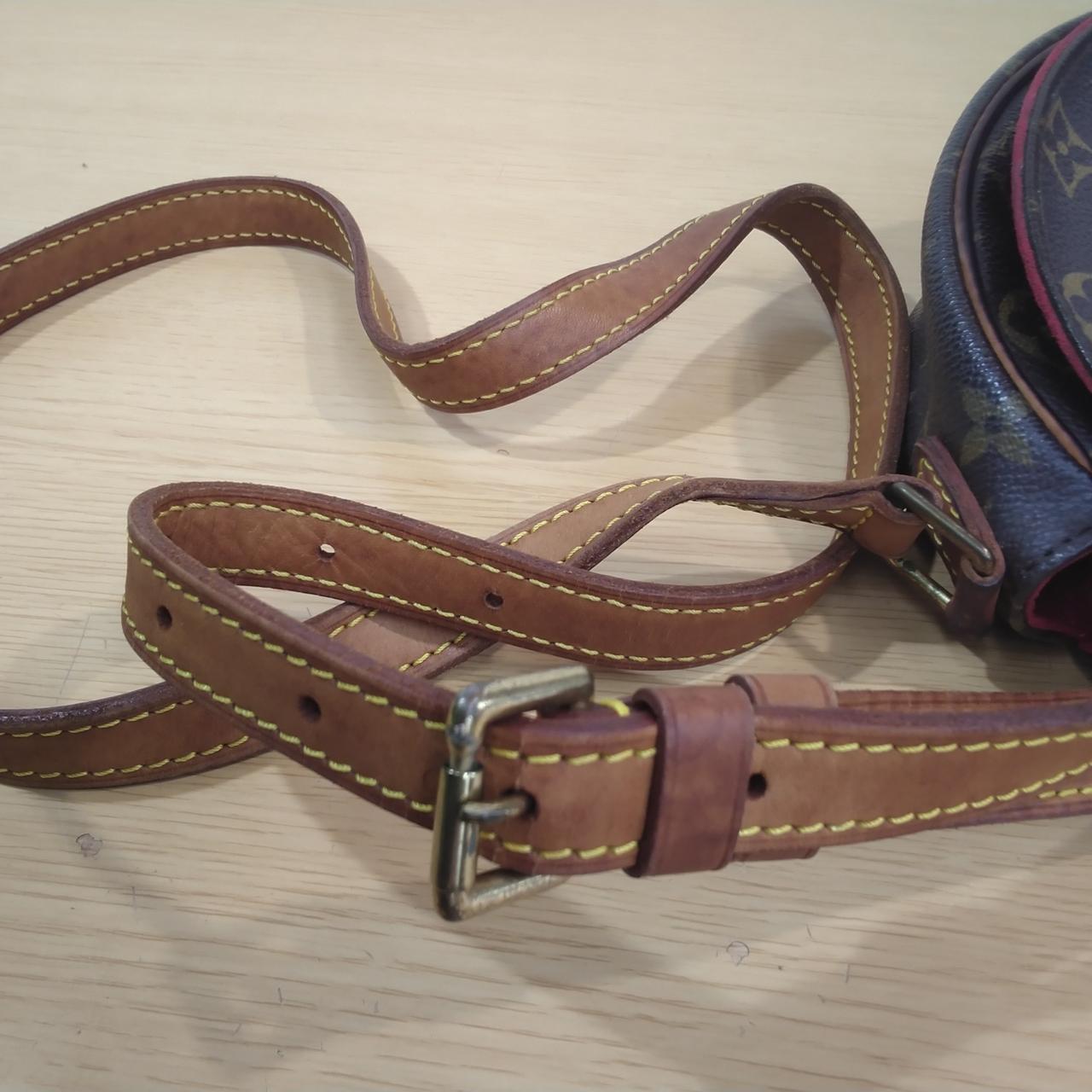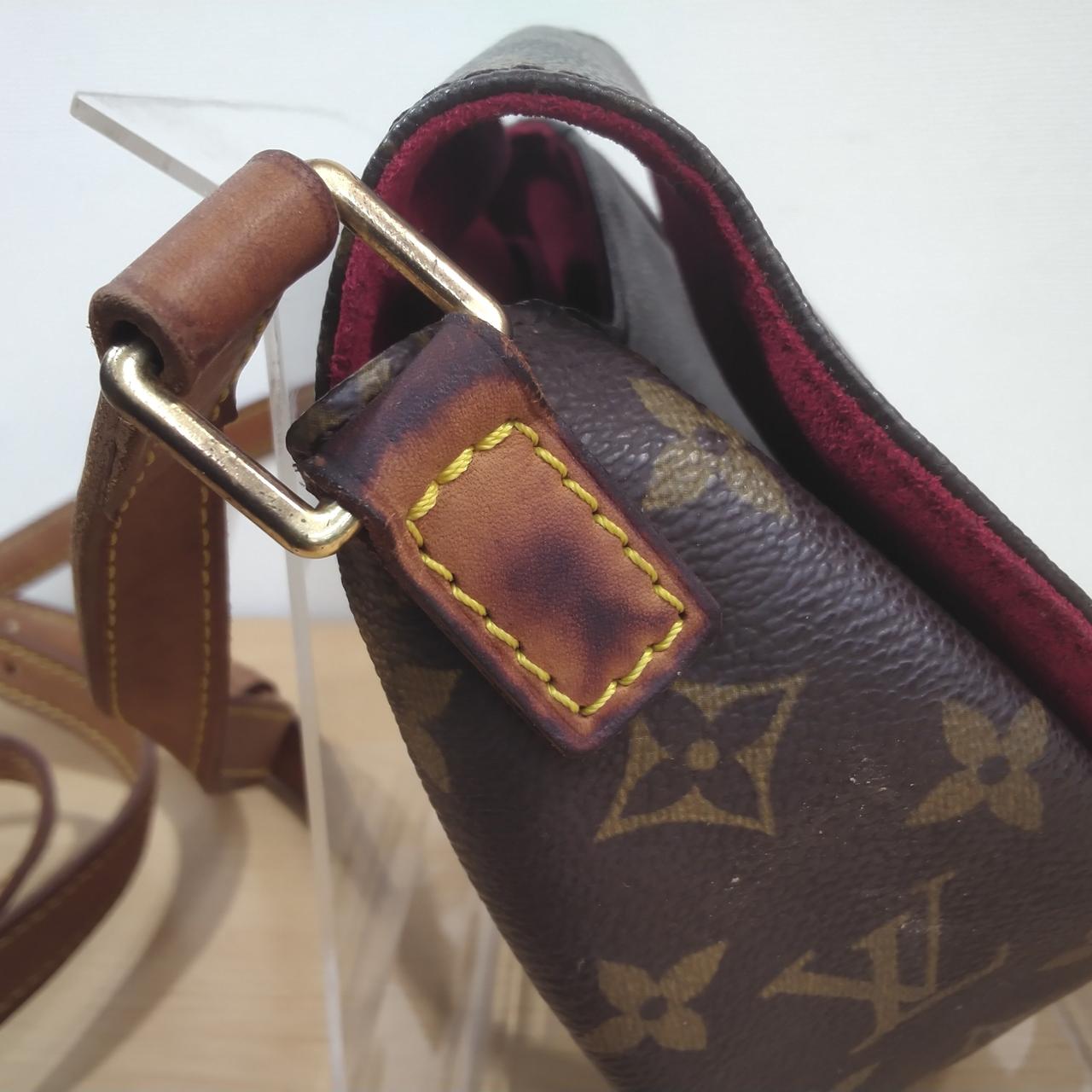 レザー部に黒ずみがあります。金具に剥がれがあります。 |