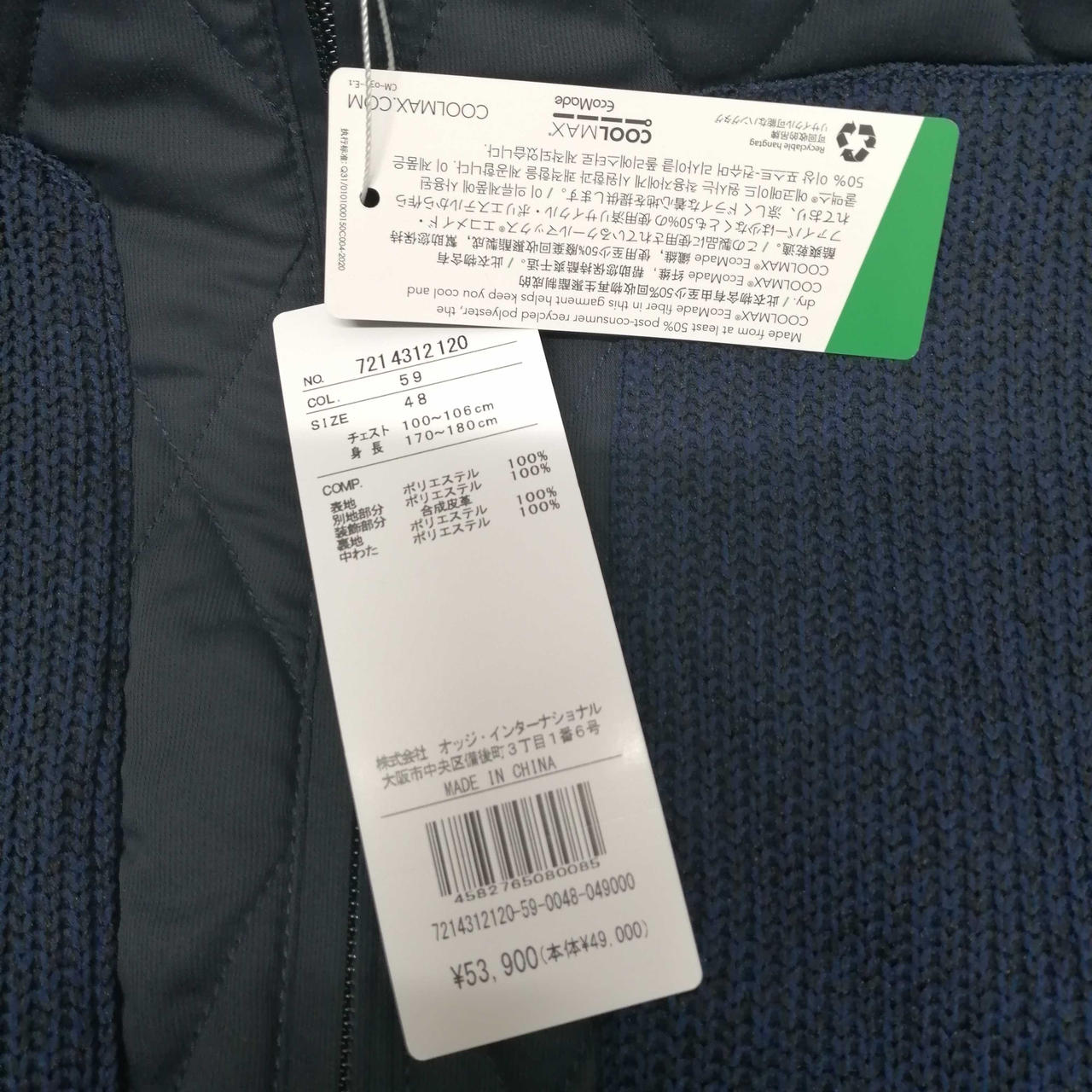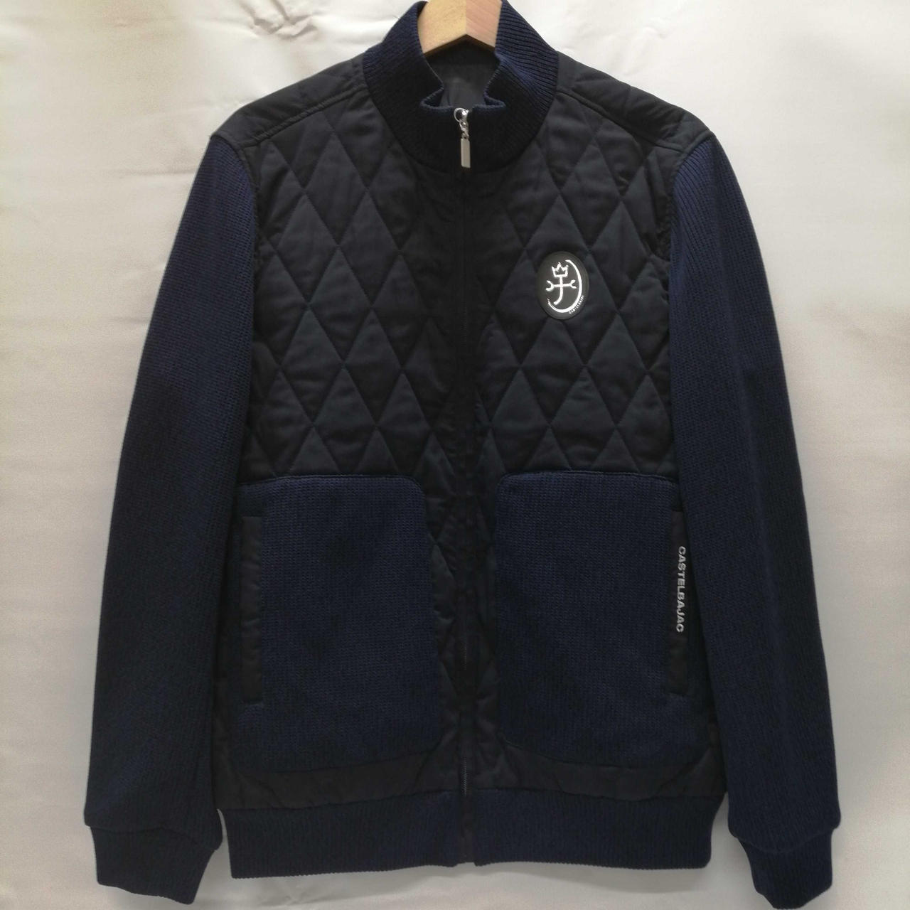 袖、衿のポケットはポリエステル素材のニットになり、見頃は薄い中綿入りのキルティングブルゾンです!!