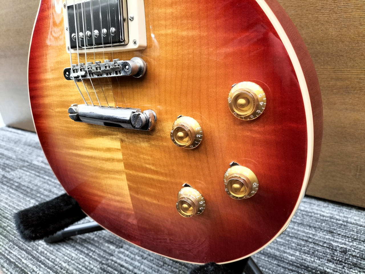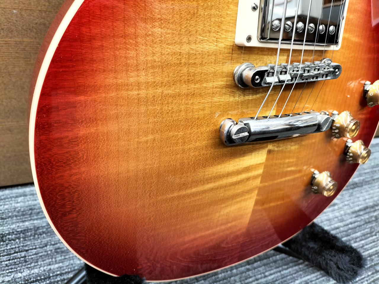 2017年製GIBSON LES PAUL TRADITIONALです!トラ目が美しいHeritage Cherry Sunburst!前年モデルまで採用していたウェイトリリーフが撤廃されナイロン製ナット、ABR-1&アルミテールピースを採用!PUにはBurstbucker1&2を搭載!よりビンテージライクなサウンドでおすすめの1本です! |