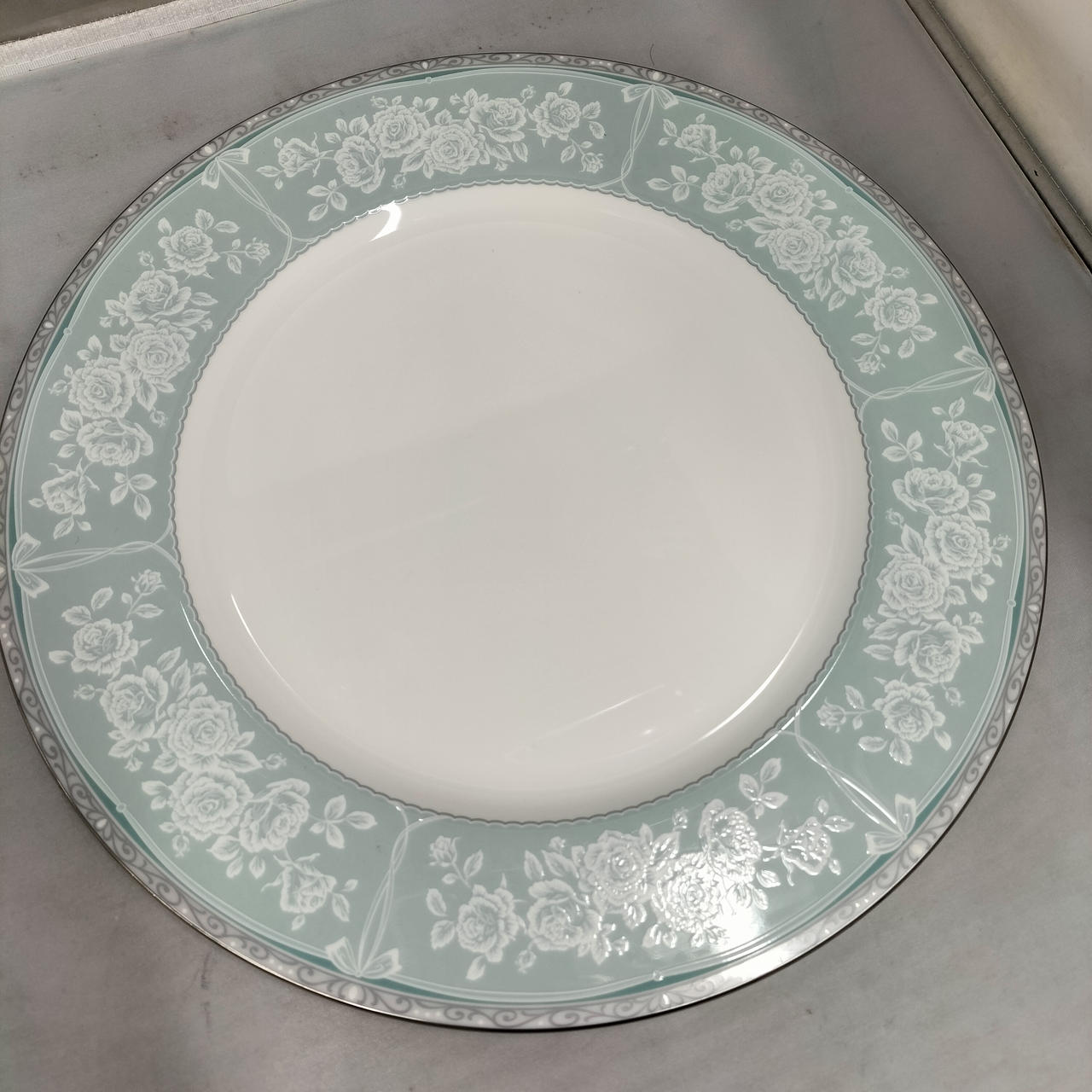 薄いグリーンが可愛い大きめのプレートです。