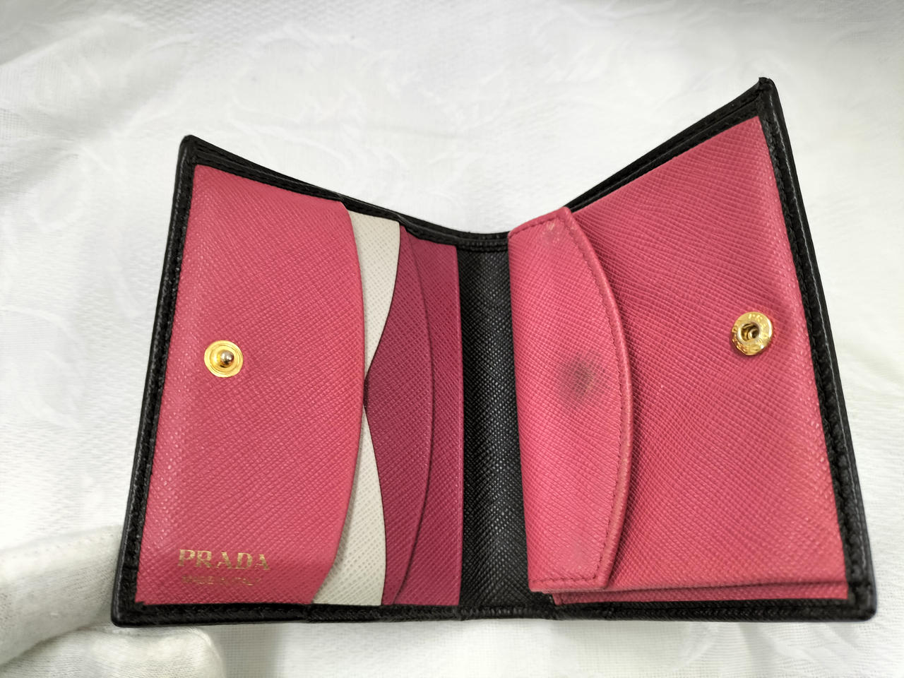 箱付き、内側がピンクや白といった色で作られています。 |
