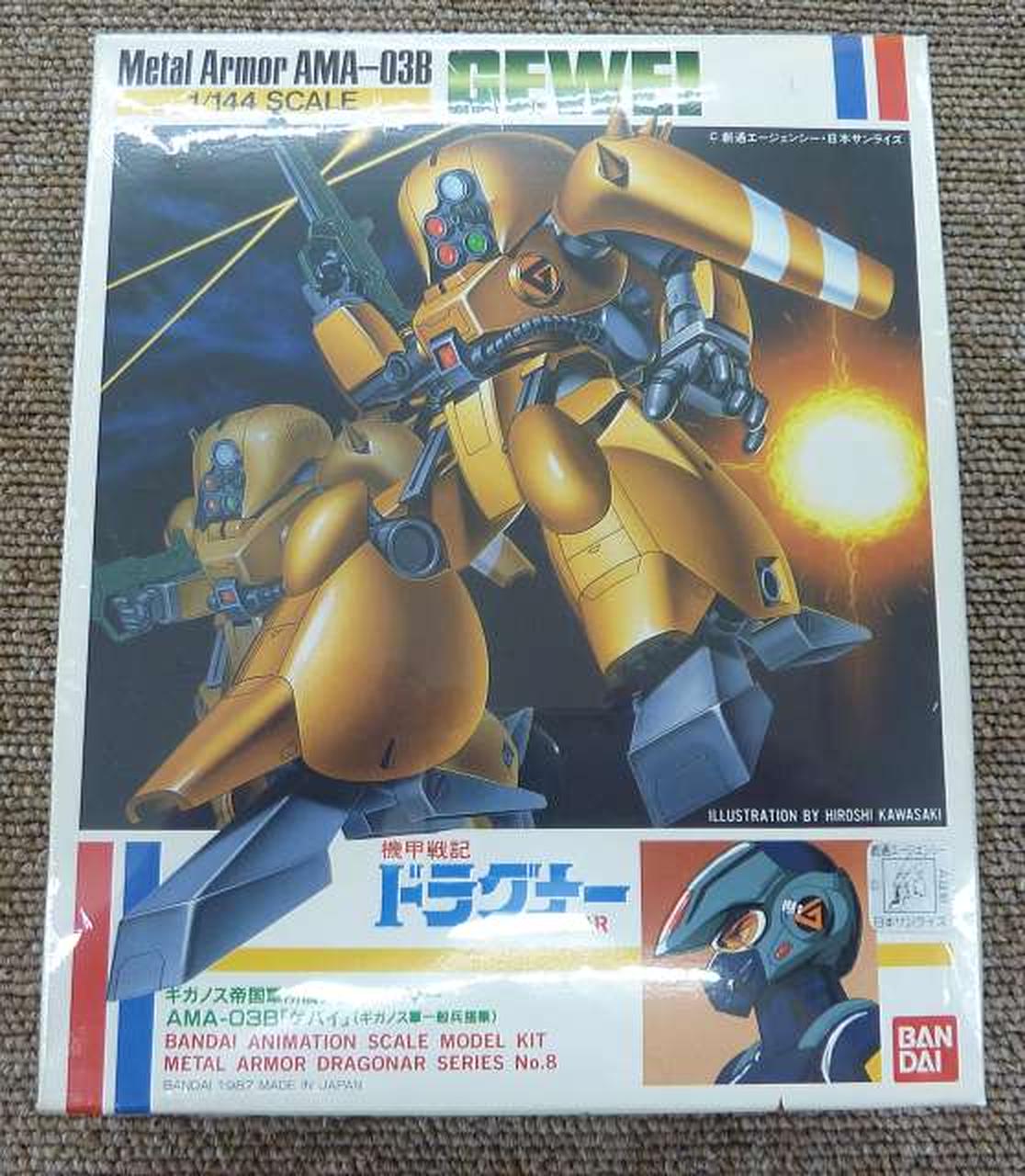 機甲戦記 ドラグナー」よりギガノス軍初の攻撃型メタルアーマー 『ギガノス帝国軍所属メタルアーマー AMA-03B ゲバイ(ギガノス軍一般兵搭乗)』のプラスチックモデル組立キットになります。各ブロックは、関節のポリキャップに差し込み式ですので、組み立てや塗装が簡単にできます。ギガノス軍マークやシールドのラインなどを再現するシール、ハンドレールガン付属。 |