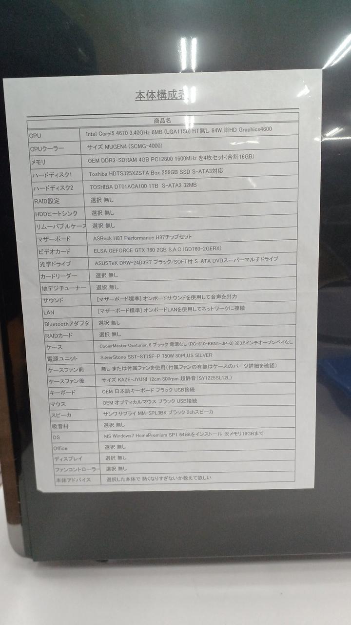 WINDOWS10Home SSD:256GB HDD:1TB Intel Core i5 4670 3.40GHz RAM:32GB