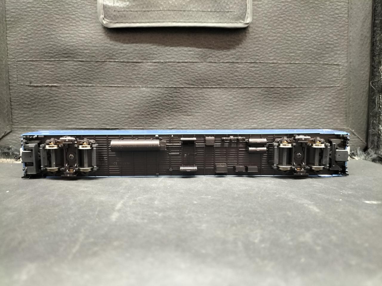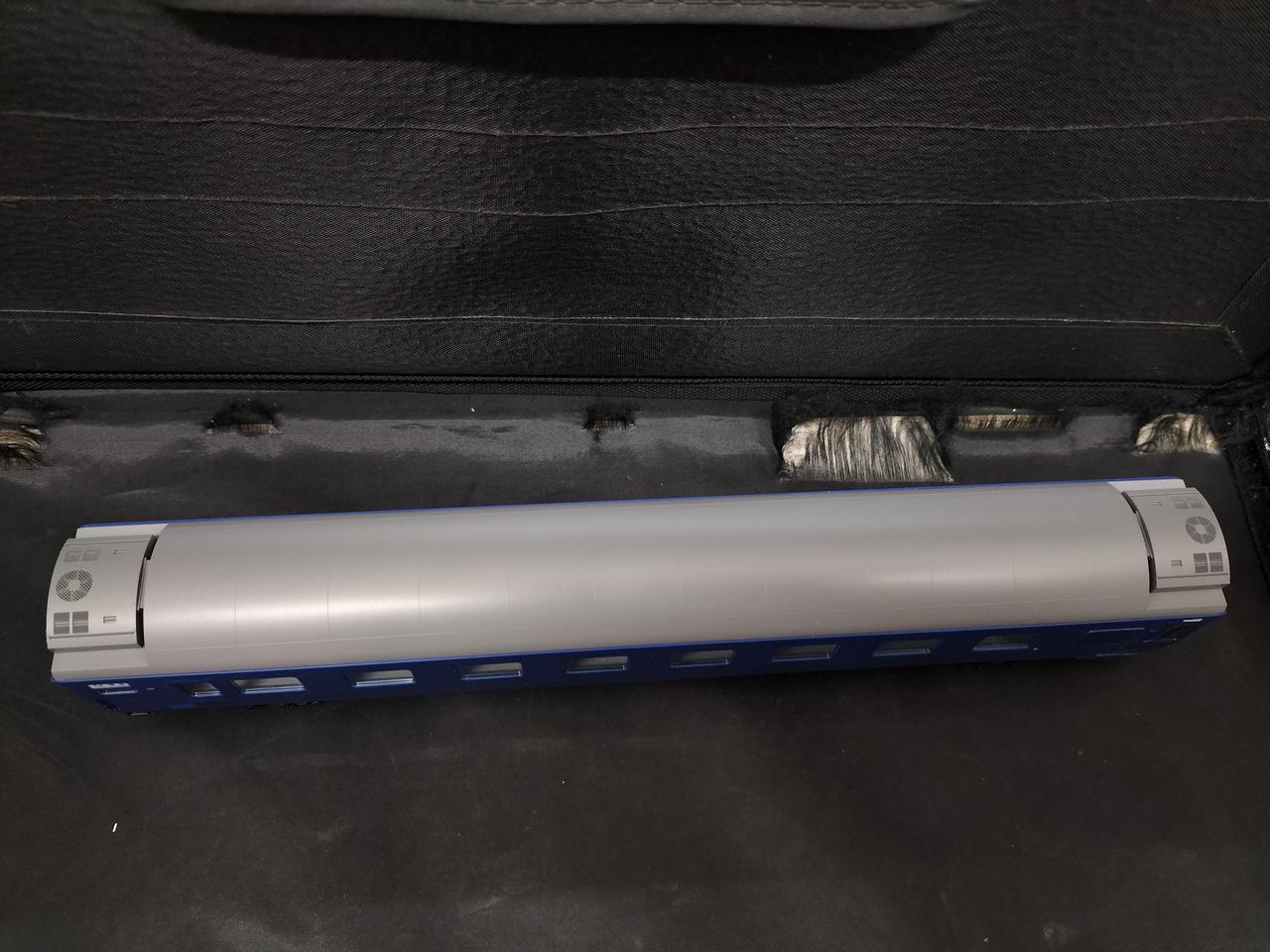 確認できる限り元の製品と比べ、窓一箇所塞がれ、両側ドアの形状が異なります。ドアの横に下の銀帯を遮る形でパーツが取り付けられています |