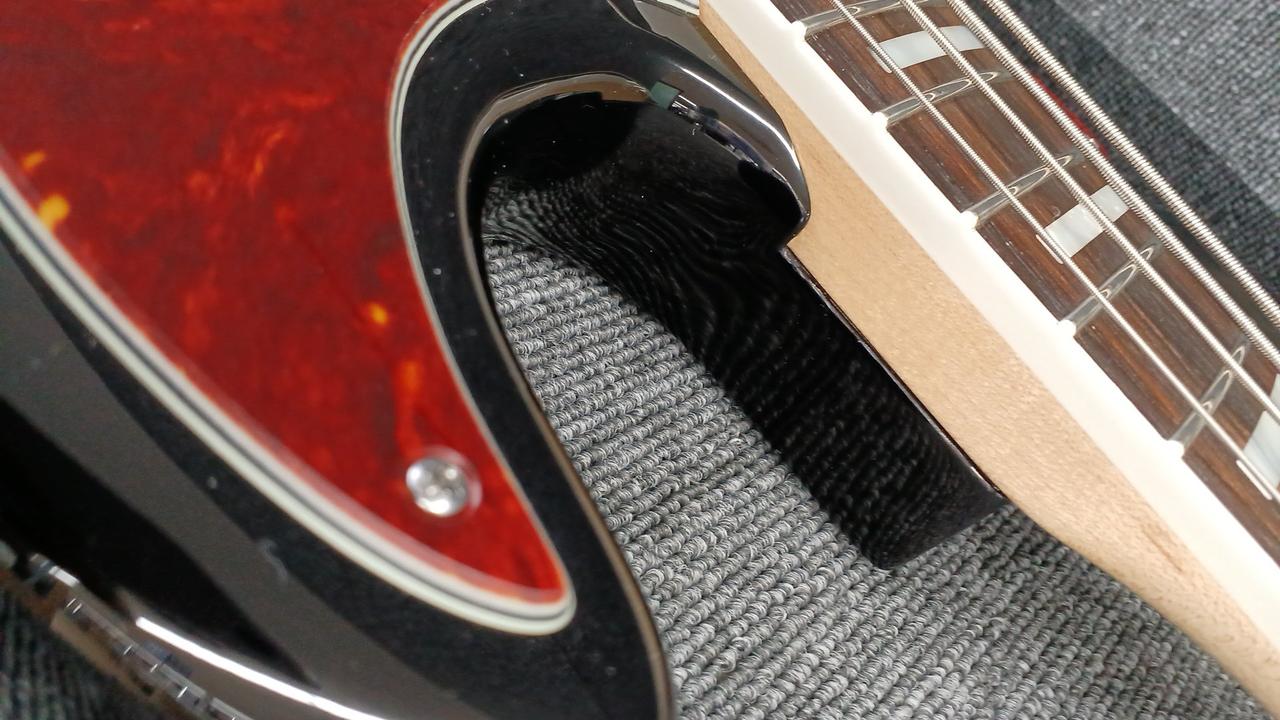 アッシュボディとローズウッド指板、ブロックインレイが特徴です。 |