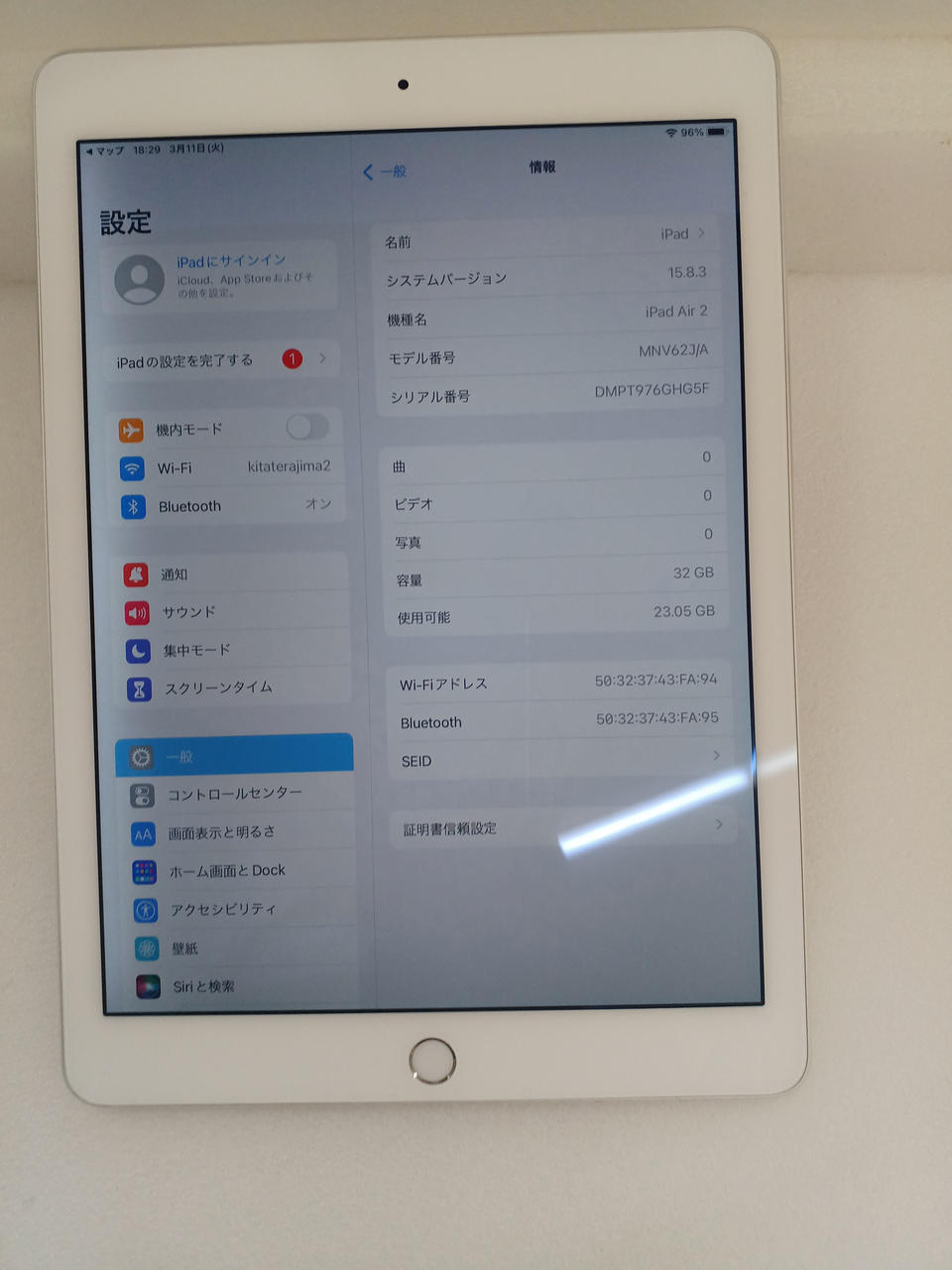IPADOS:15.8.3 ストレージ:32GB WIFIモデル |