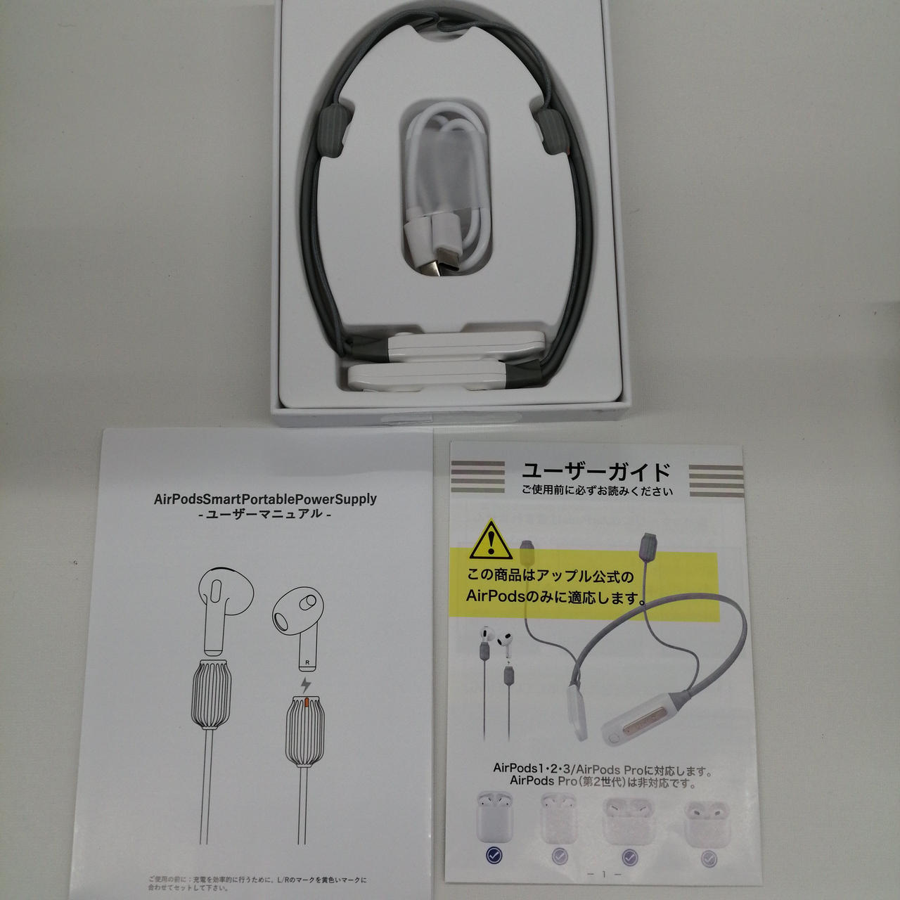 AirPodsを充電しながら使える革新的充電器です。・化粧箱・取扱説明書・接続ケーブル・キズ・ヨゴレ