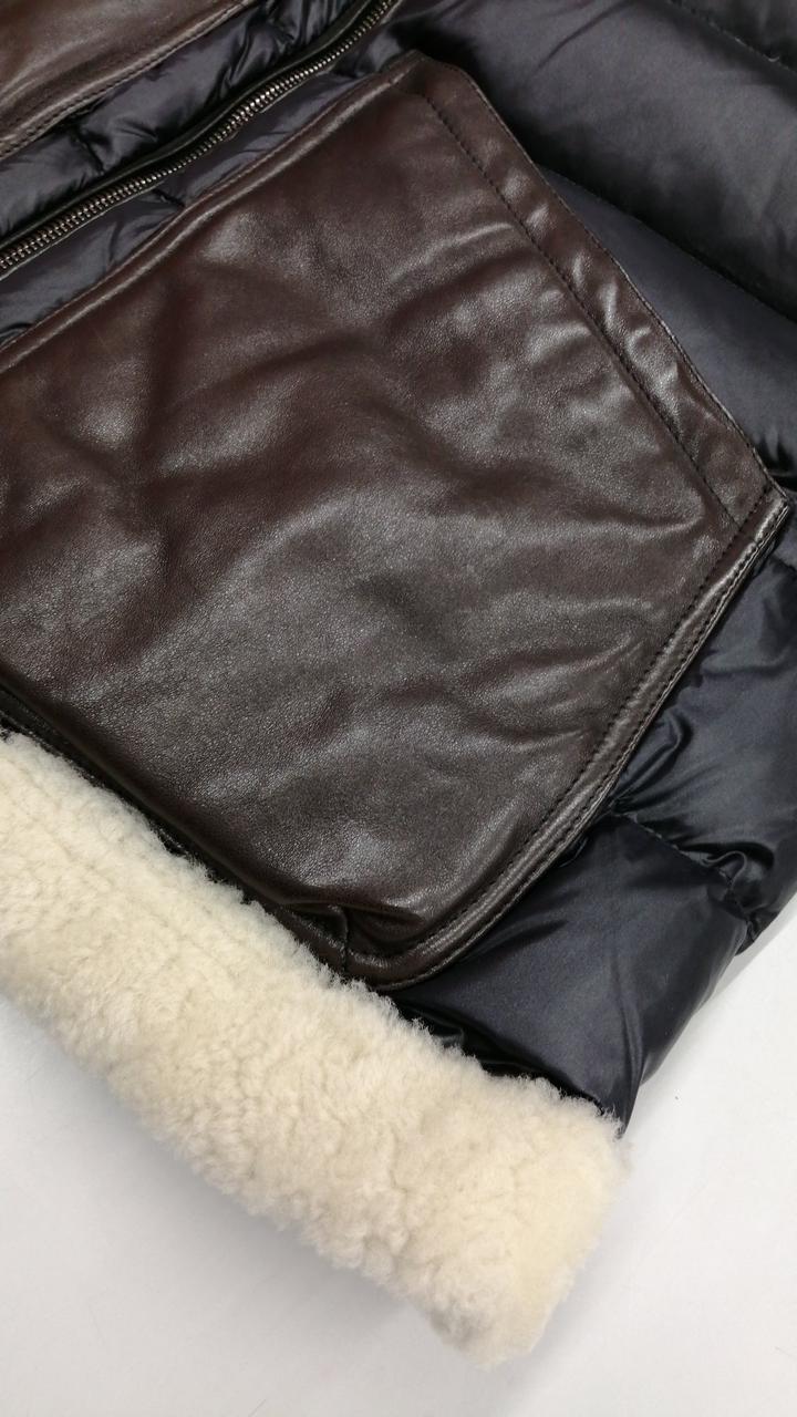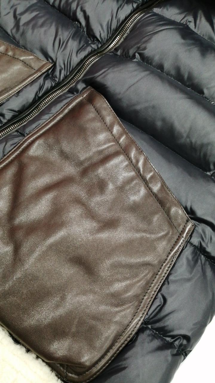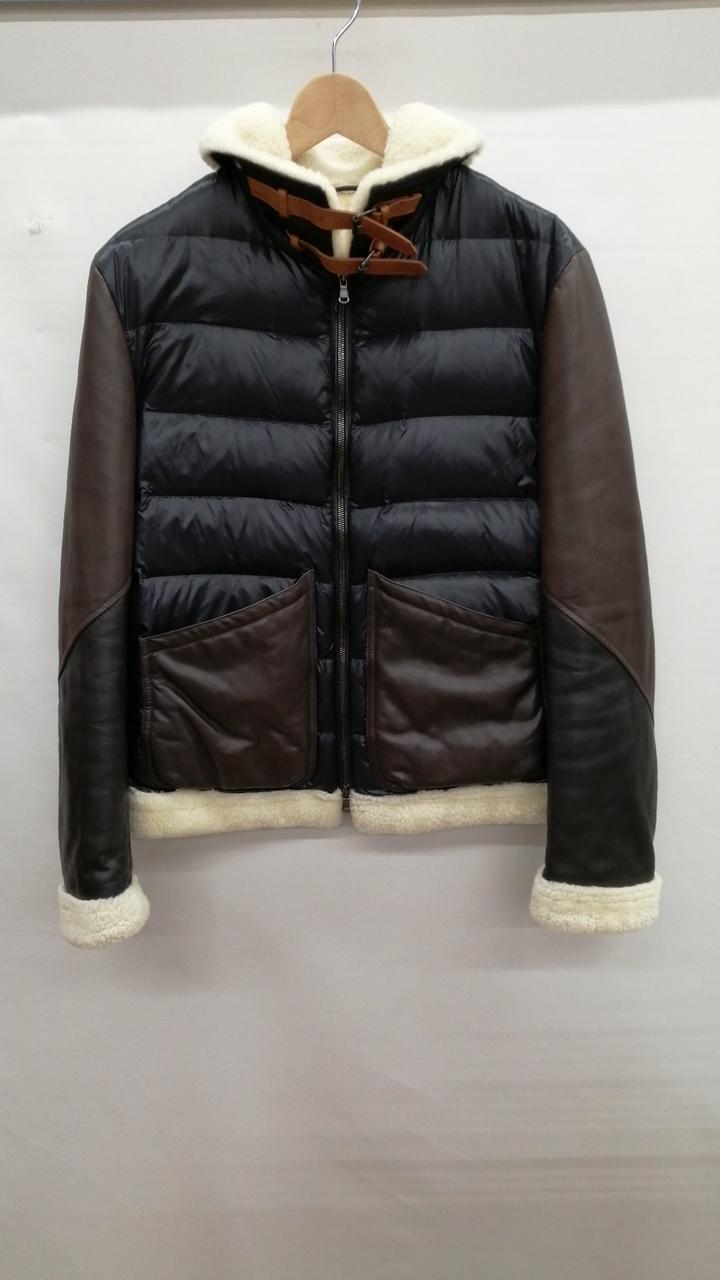 レザー切り替えムートンダウンジャケット