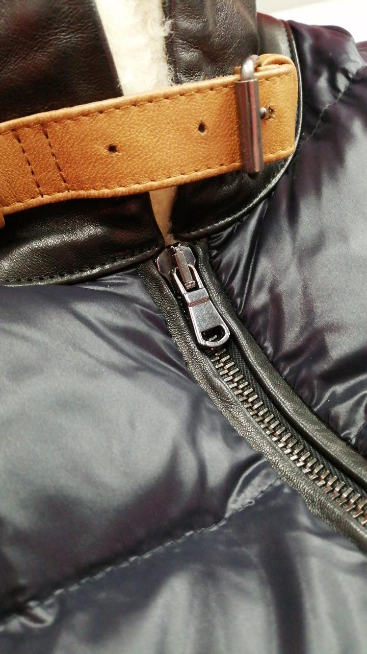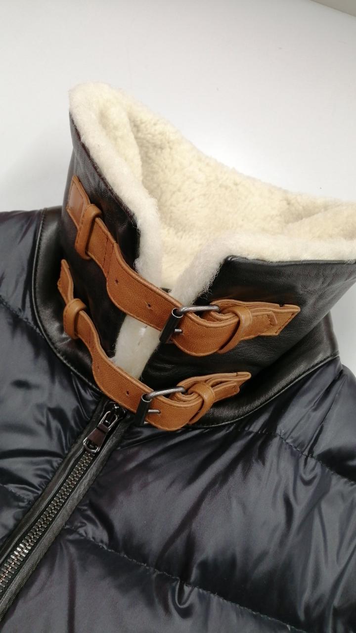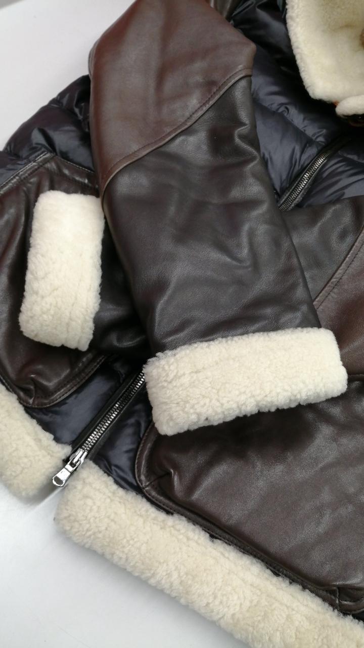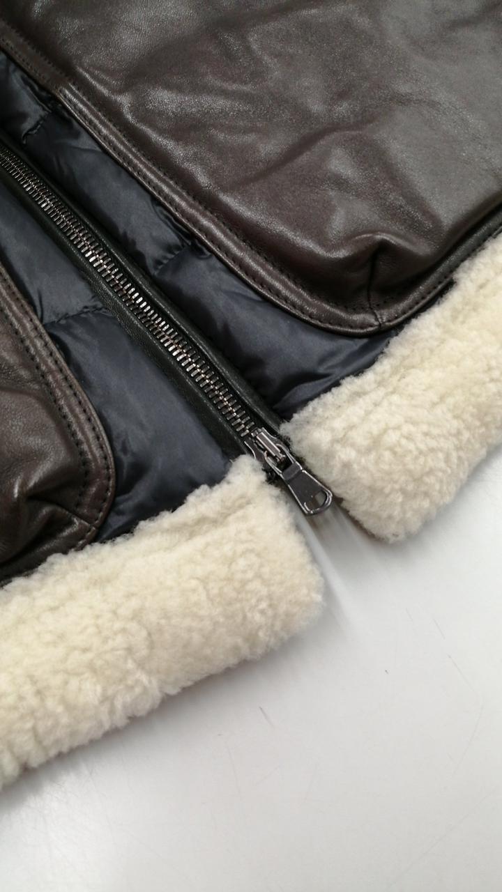 レザー切り替えムートンダウンジャケット