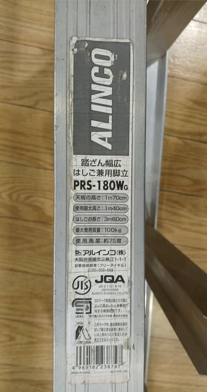 はしご長さ:3m60cm 最大使用質量:100kg 使用角度:約75° |