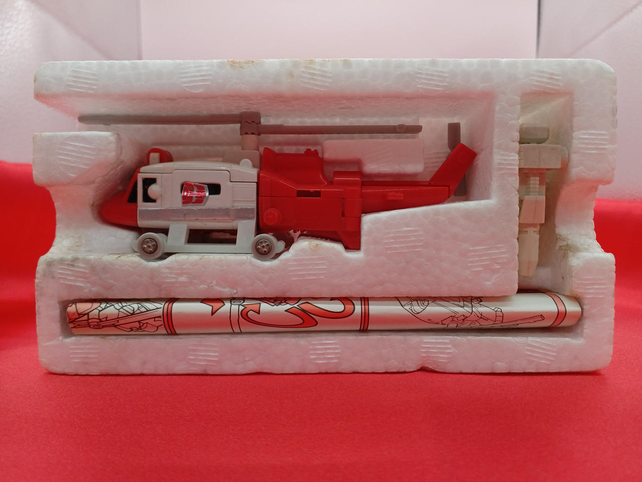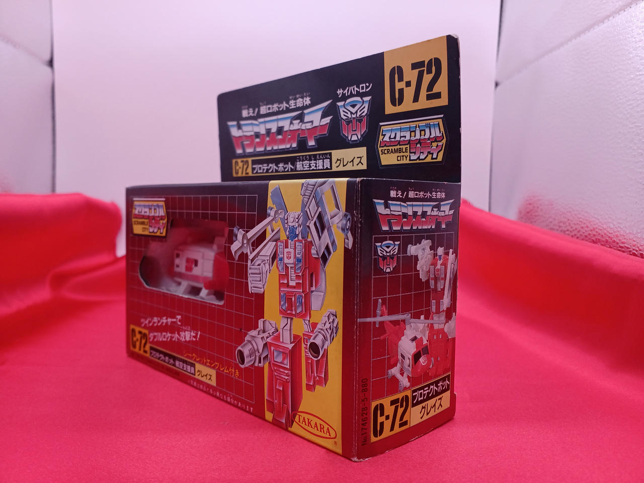 外箱イタミ、劣化。本体左右側面のサイバトロンシールの向きNG。