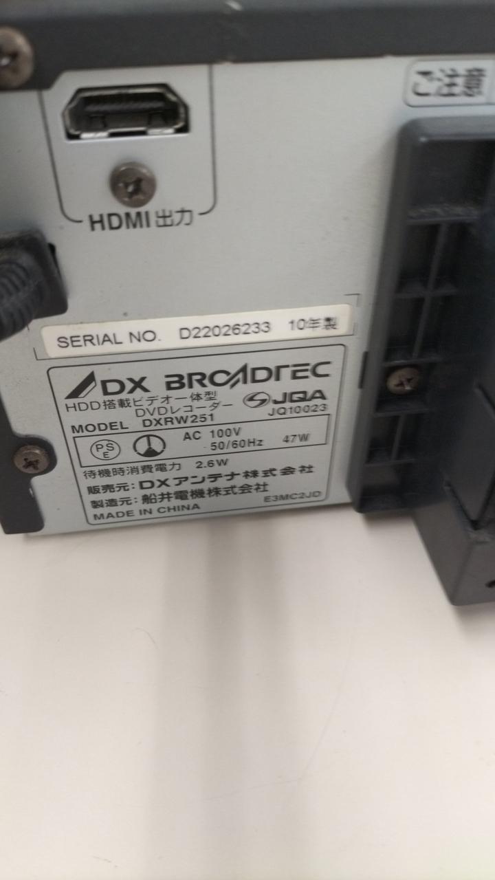 DX BROADREC DVD/VHSレコーダー DXRW251 |