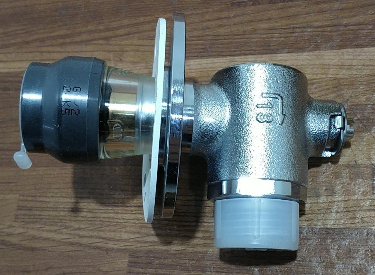 フランジ付アングルボールバルブ 配管アダプターとボールバルブ止水栓の一体化によりスッキリした配管ができます。また、流量調整も可能です |