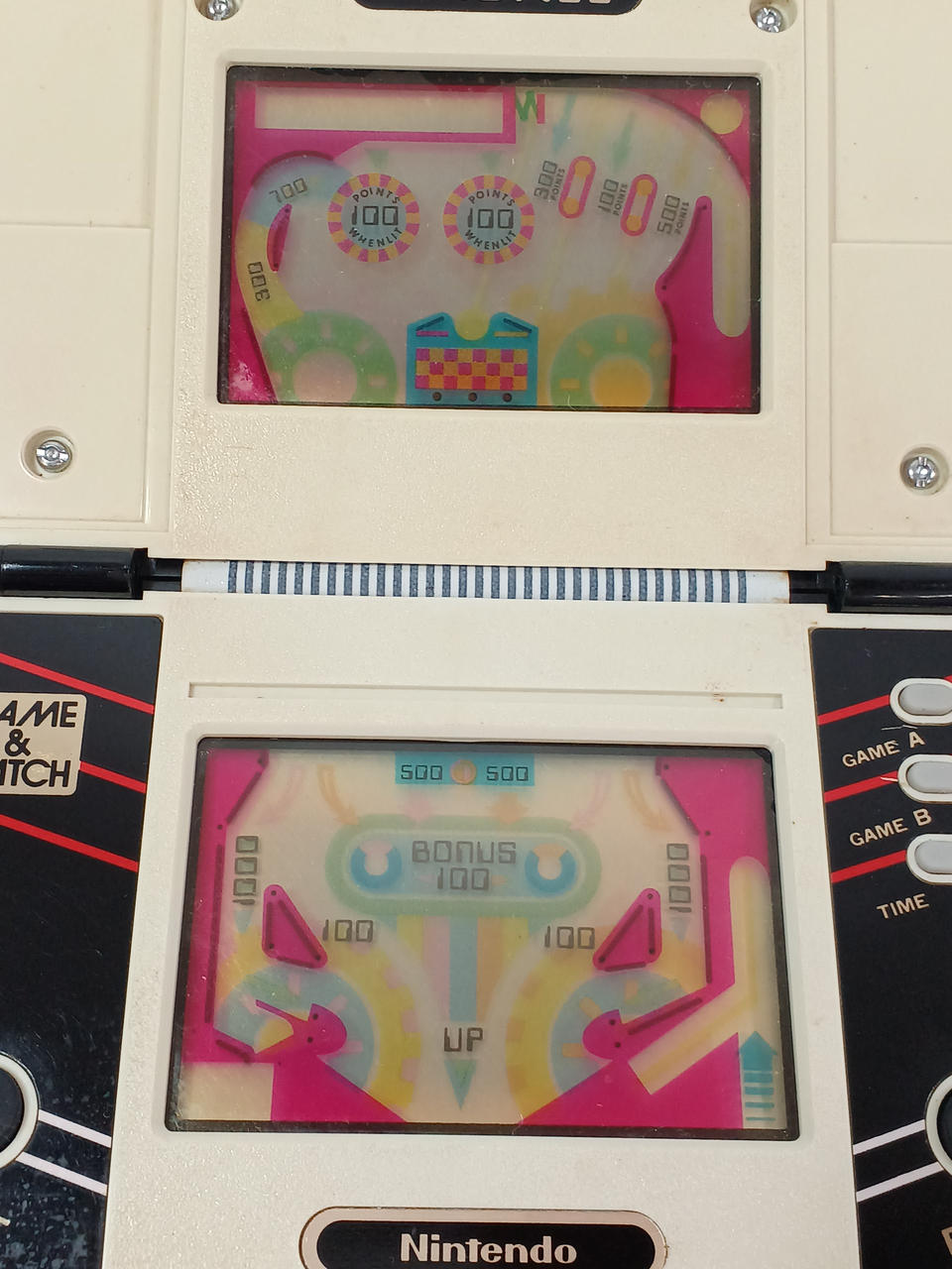 チェック時、音の確認は出来ましたが、ボールの表示が見えず(最後の画像が電池セット中の表示です)動きが不明です。※電池ブタ欠品です。 |