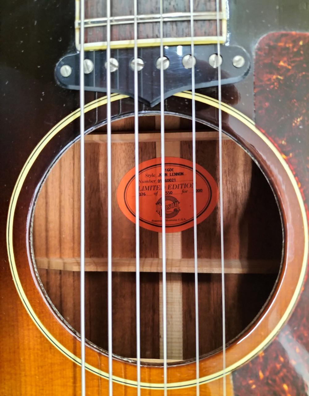 ジョンレノンをオマージュしたJ-160E!往年のビートルズサウンドの原点です。 |