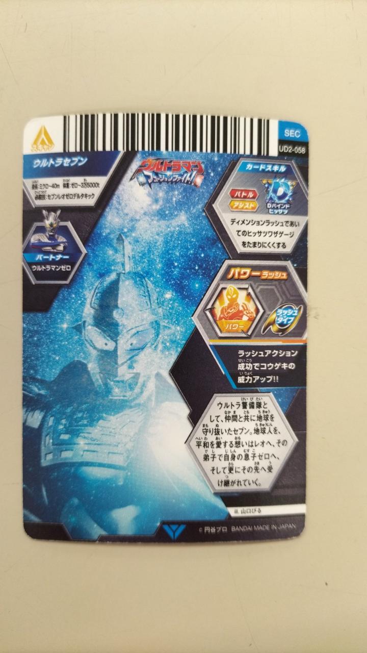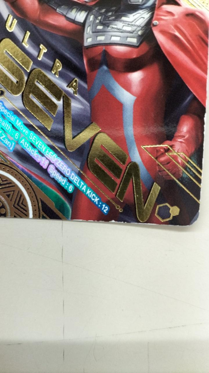ウルトラセブン、ウルトラマンレオ、ウルトラマンゼロのイラストが輝かしいカードです。 |