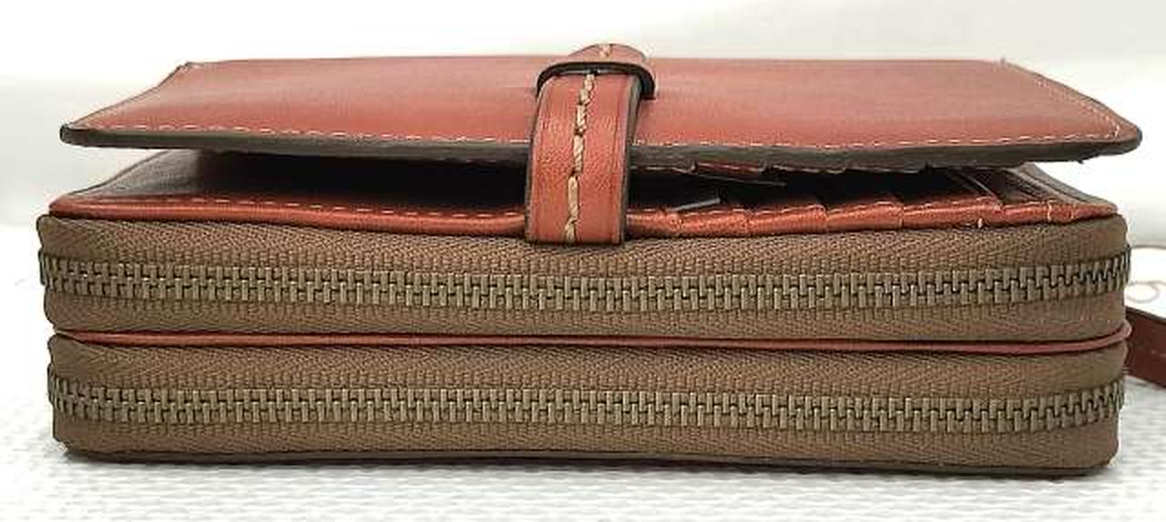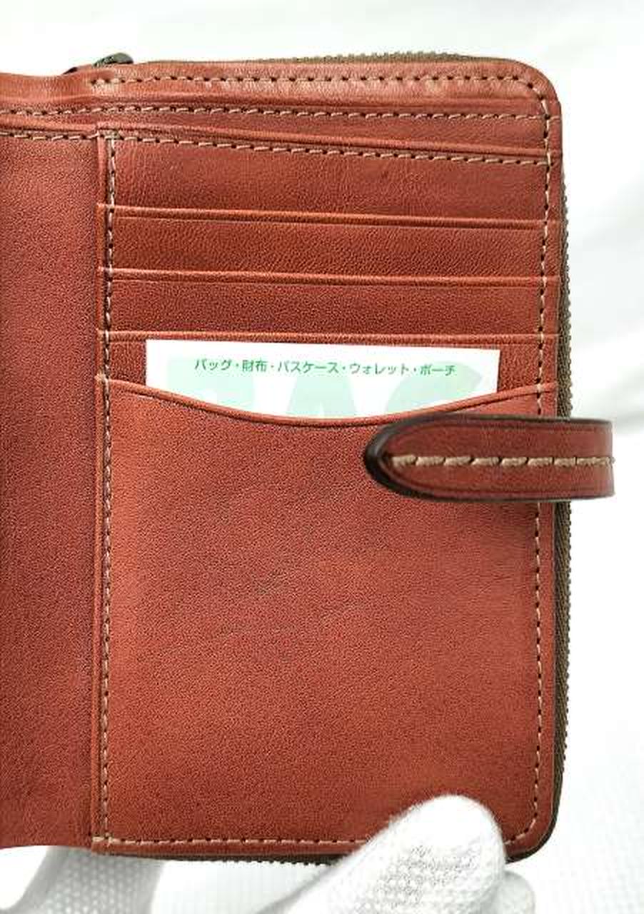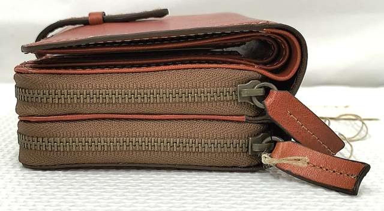 内側:札入れ×2、カードポケット×8、ポケット×2 / 外側:ファスナー式小銭入れ×2(中央小銭入れ:仕切り×1、ポケット×4あり。外側小銭入れ:仕切り×2、ポケット×4あり) |