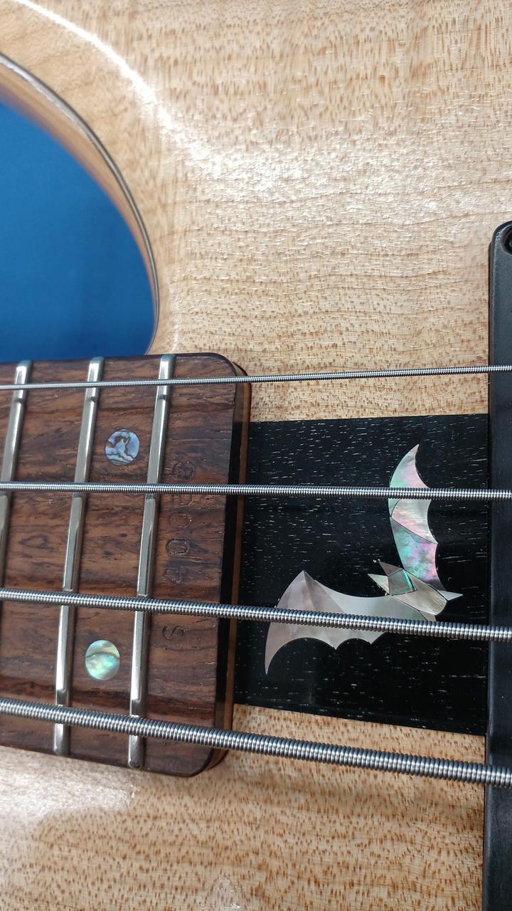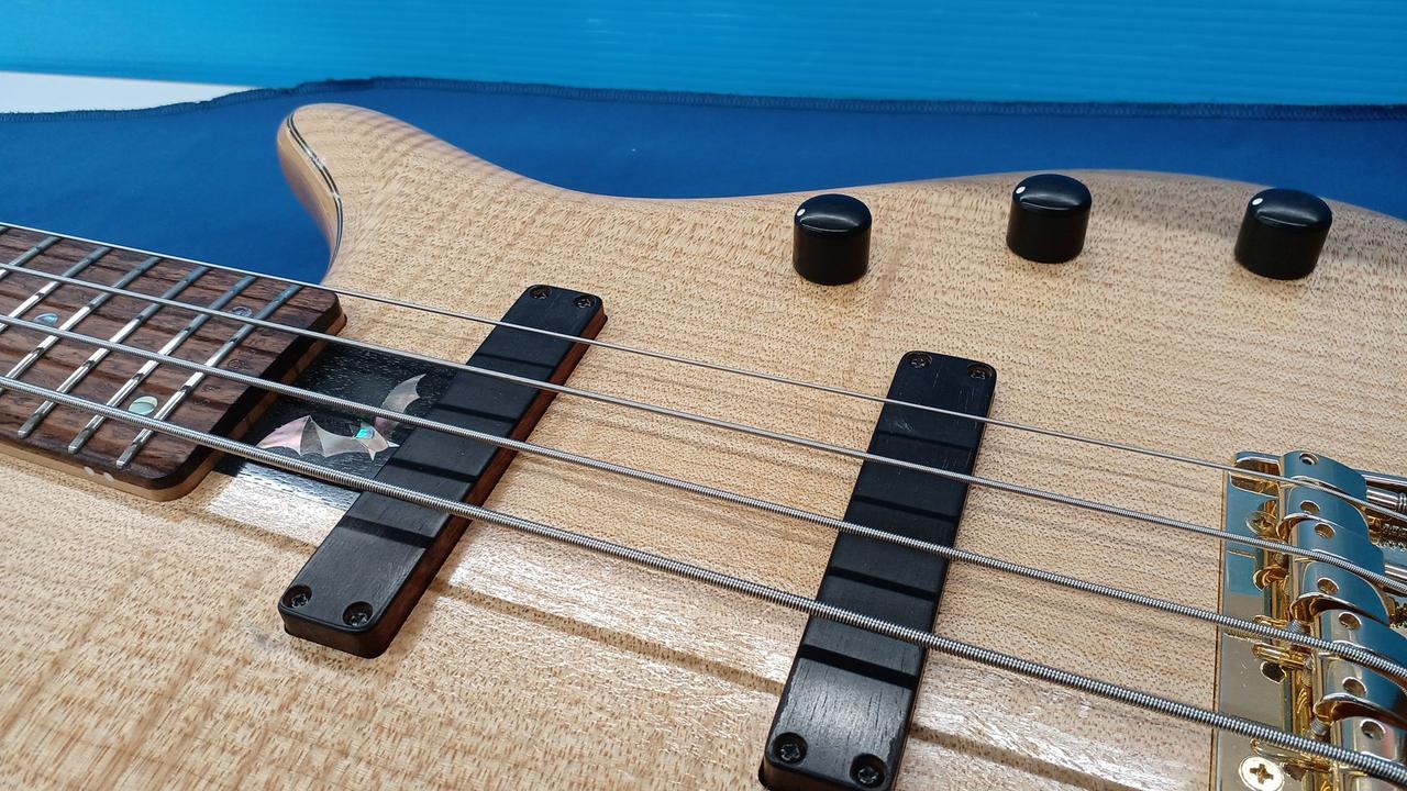 アッシュボディ、フレイムメイプルトップ、メイプルネック、指板はココボロです。 |