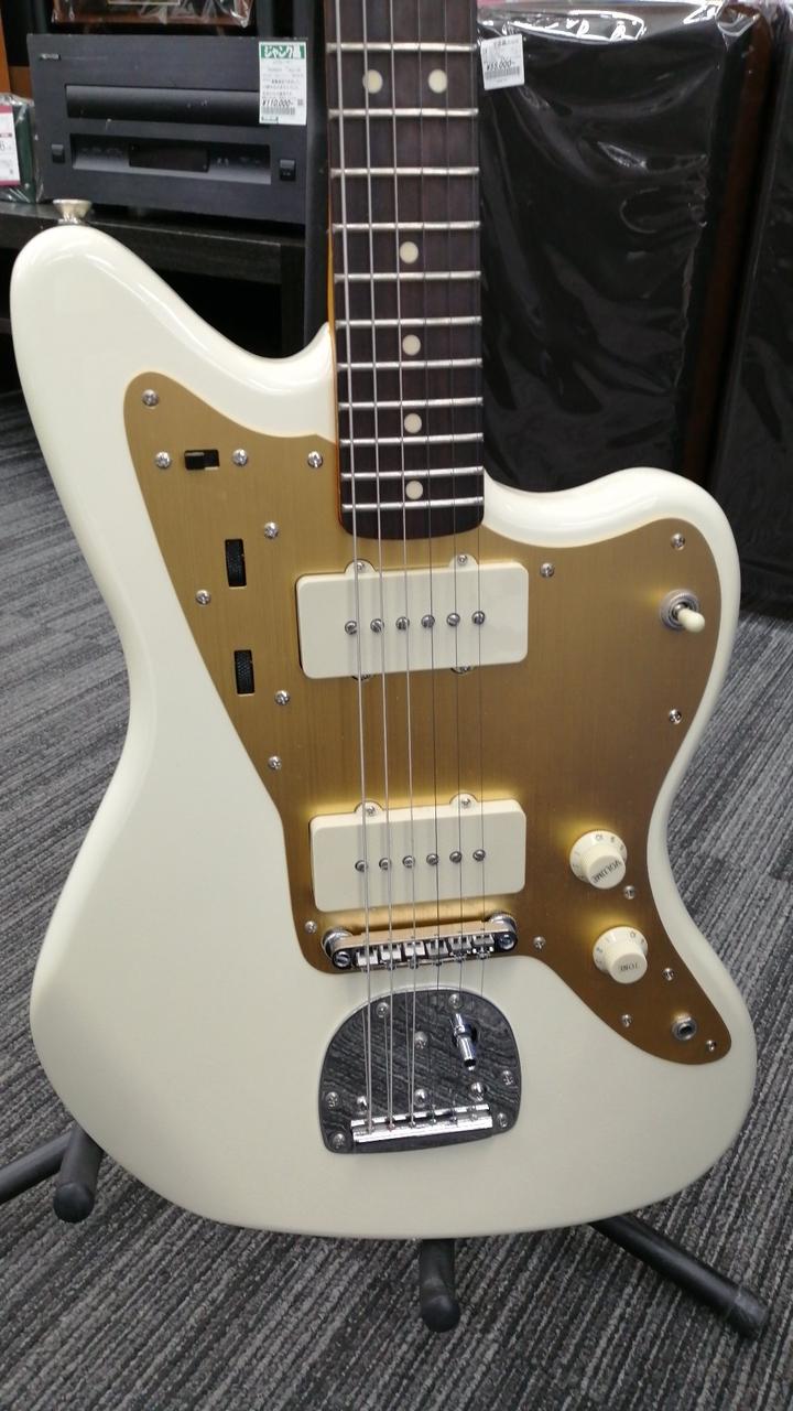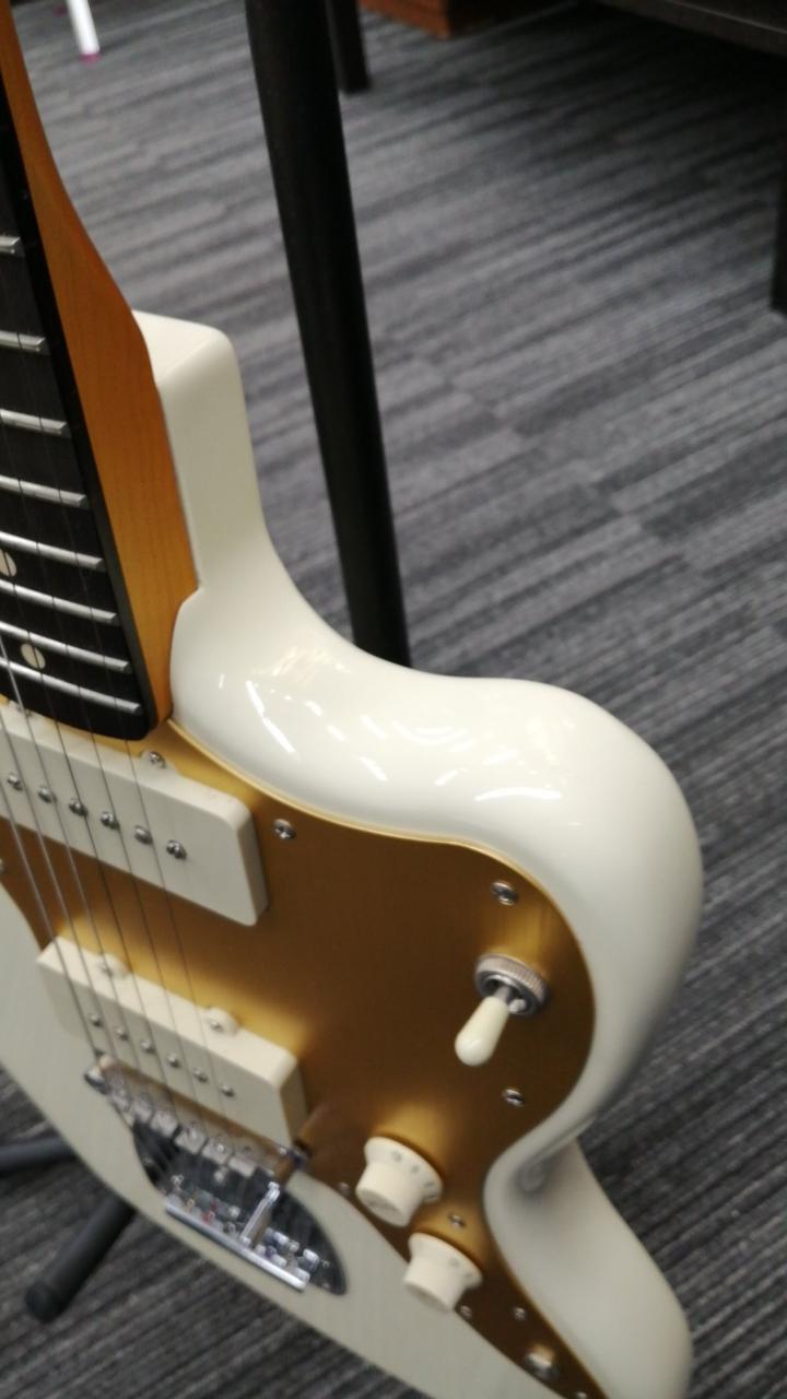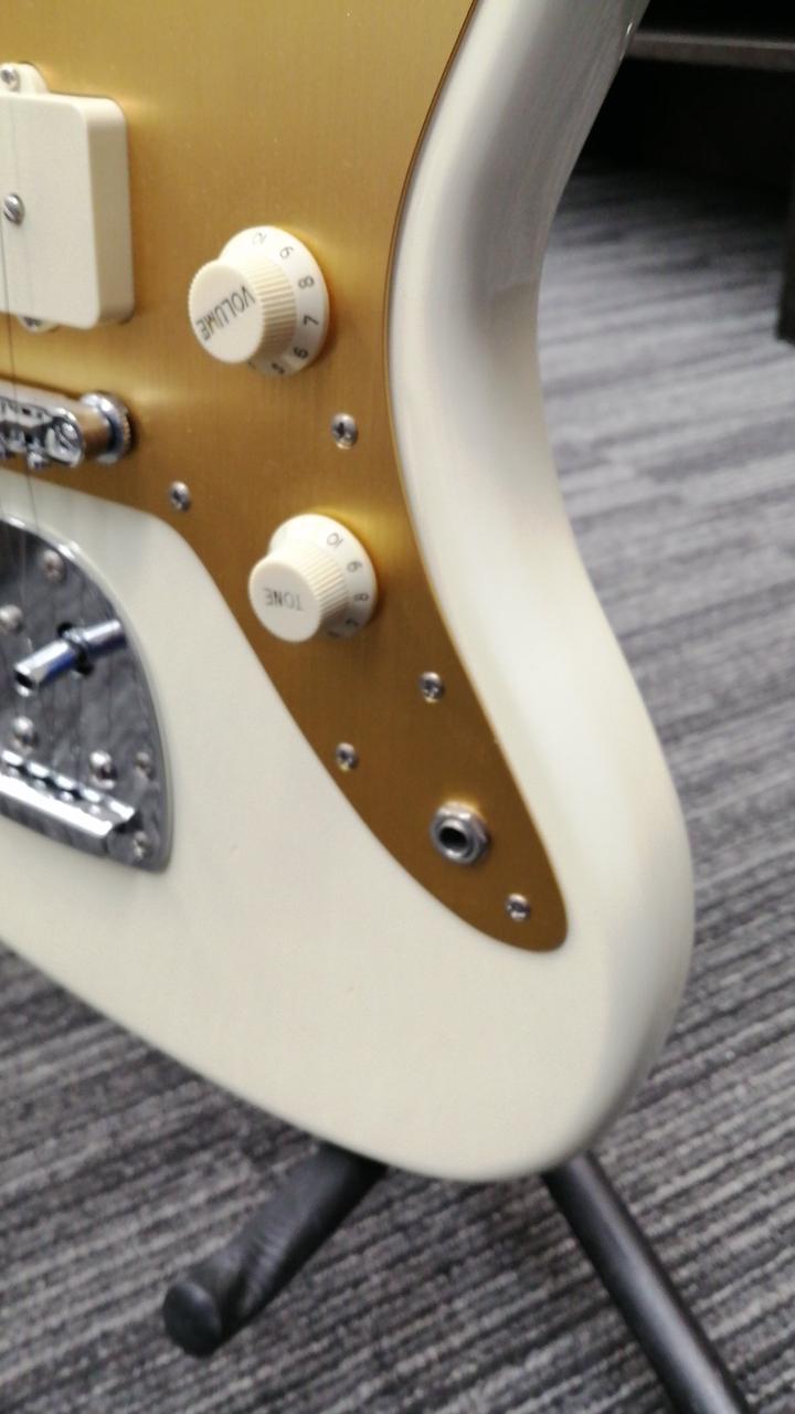 ネック:メイプル 指版:インディアンローレル フレット数:21 ボディ材:バスウッド ゴールドメッキのアルミピックガード採用 |