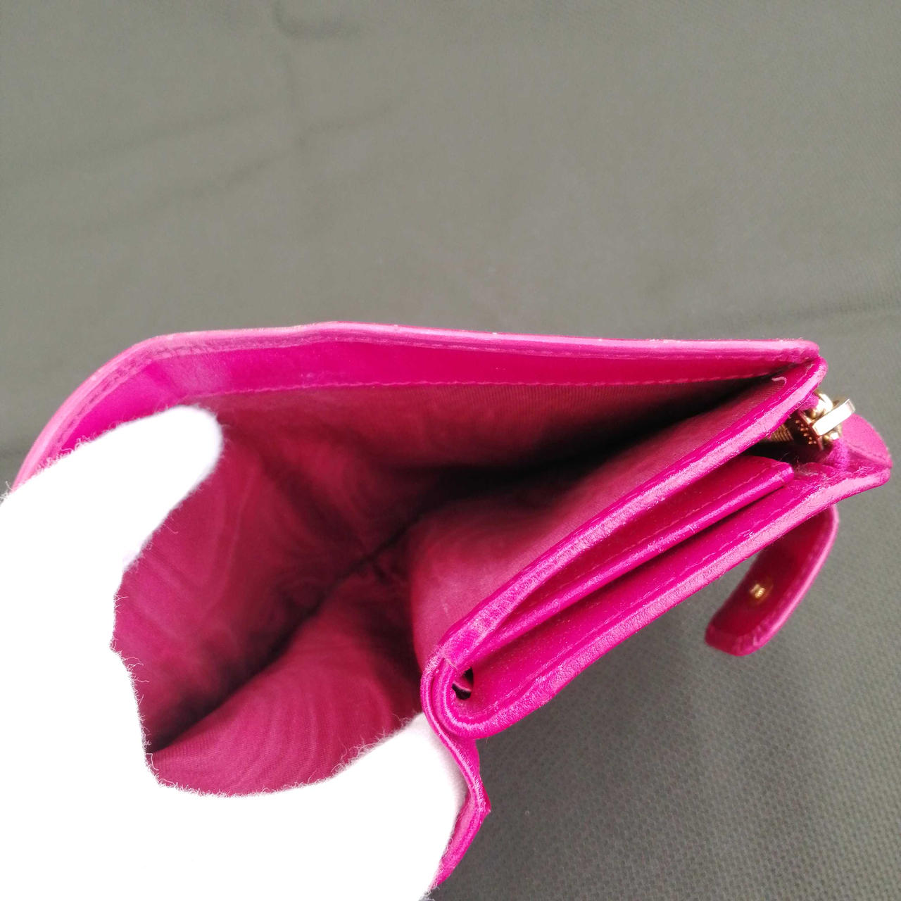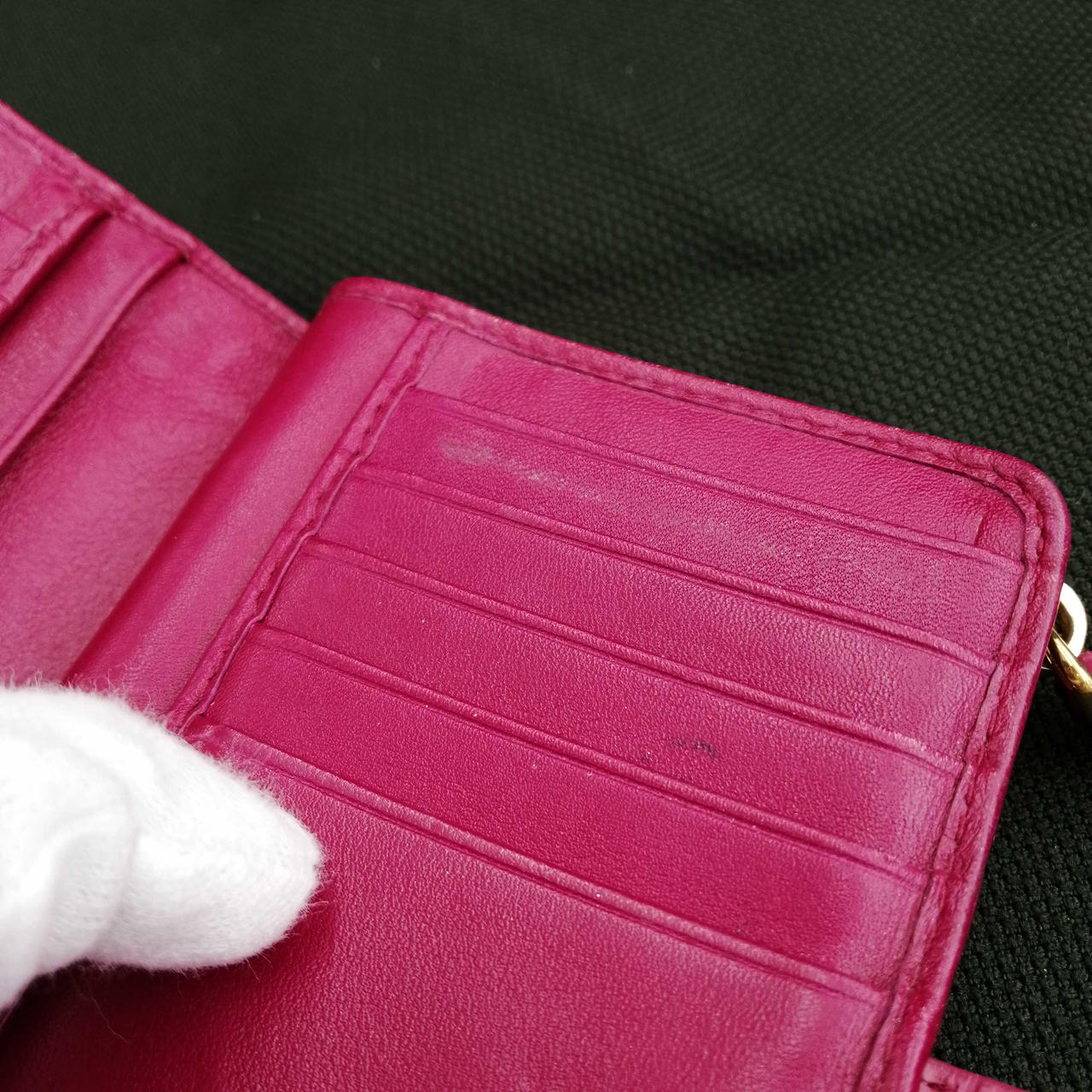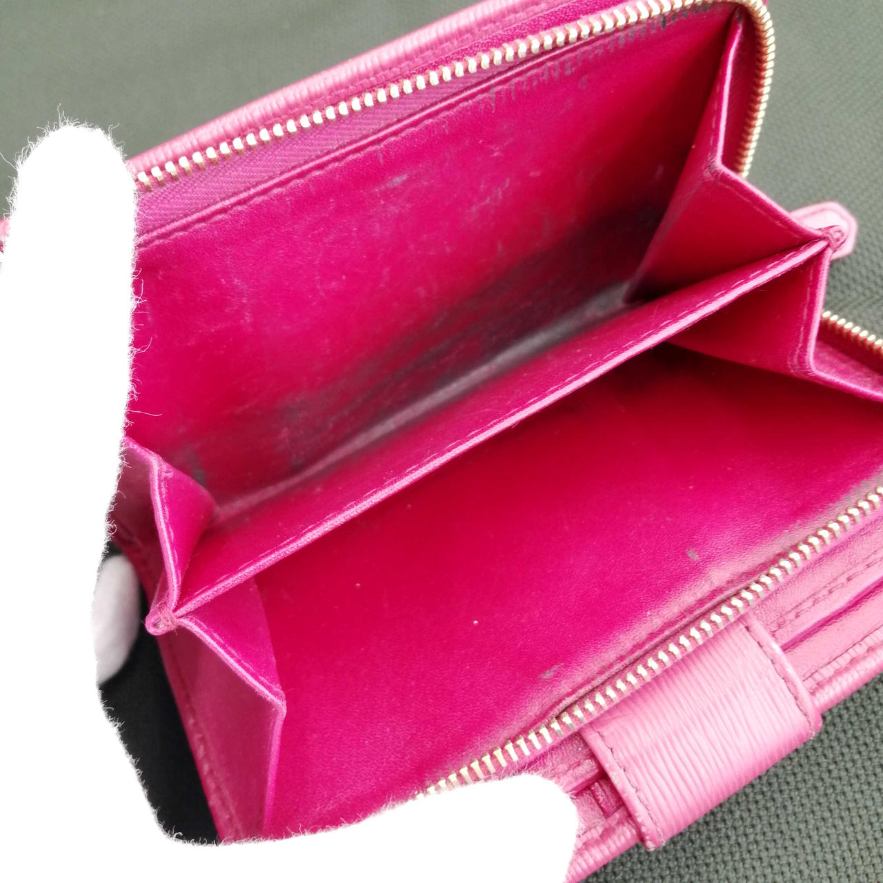 角スレ、キズ、黒ずみあります。画像にてご確認お願いします。実際の色味は画像よりも落ち着いた深めのピンクです。気になる点がありましたらお気軽に店舗までお問い合わせください。 |