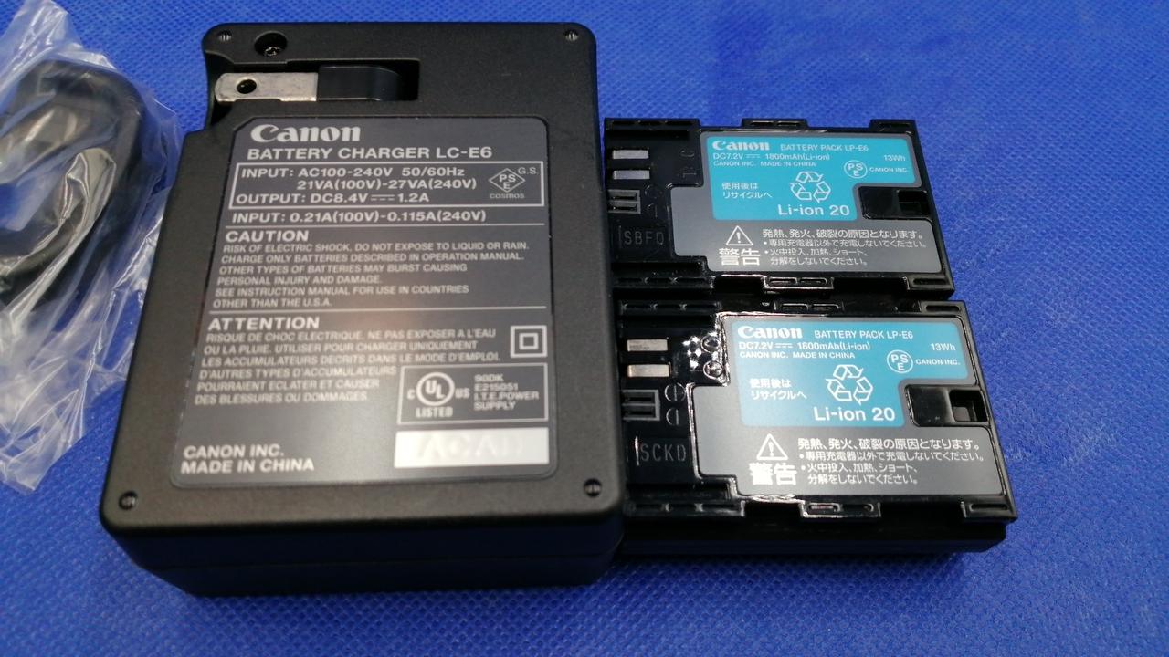 レンズ(Canon Zoom Lens EF 24-105 mm)/バッテリー & 充電器/取扱説明書/システムディスク/ストラップ/USB 接続 ケーブル/RCA 接続 ケーブル |