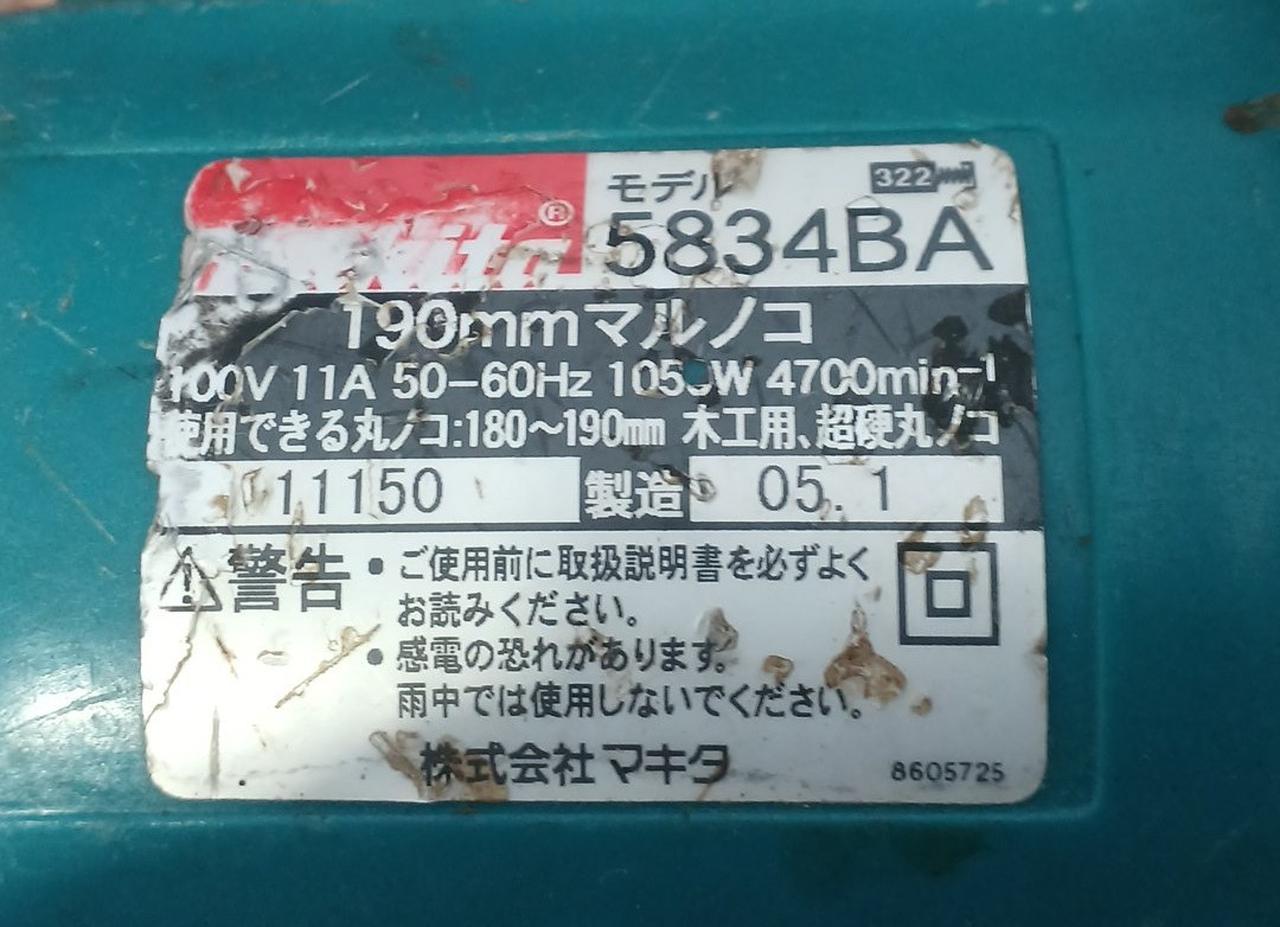 ・刃物外径:190mm ・使用できる刃物:外径180~190mm ・刃物内径:20mm(19mm) |