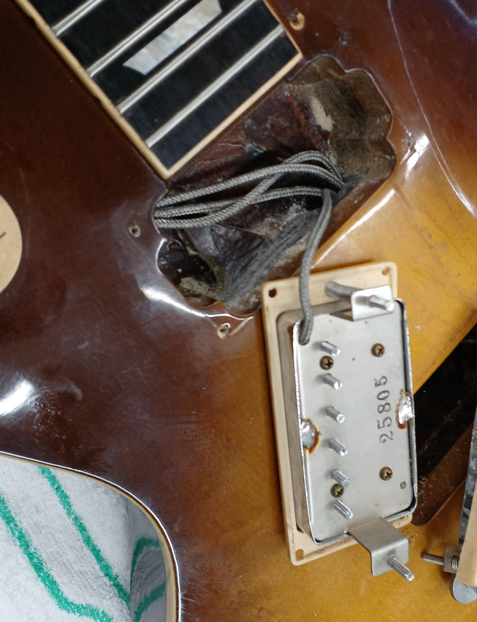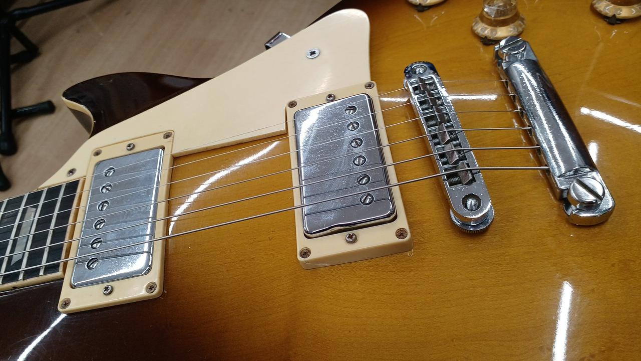 ピックアップデイトから1975年のEG700と思われます! ボディ:メイプル削り出しトップ+マホガニーバック ネック:マホガニー 指板:ローズウッド トップ材にわずかにバーズアイ杢出ています。 |