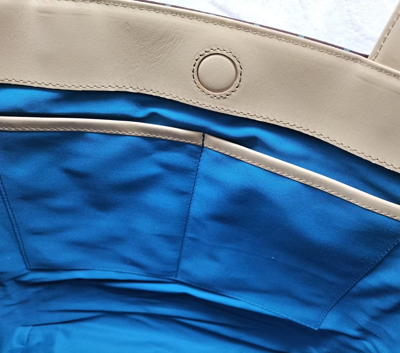 内側の布は綺麗なブルーグリーン。バッグから荷物を出す度に目が癒されます♪