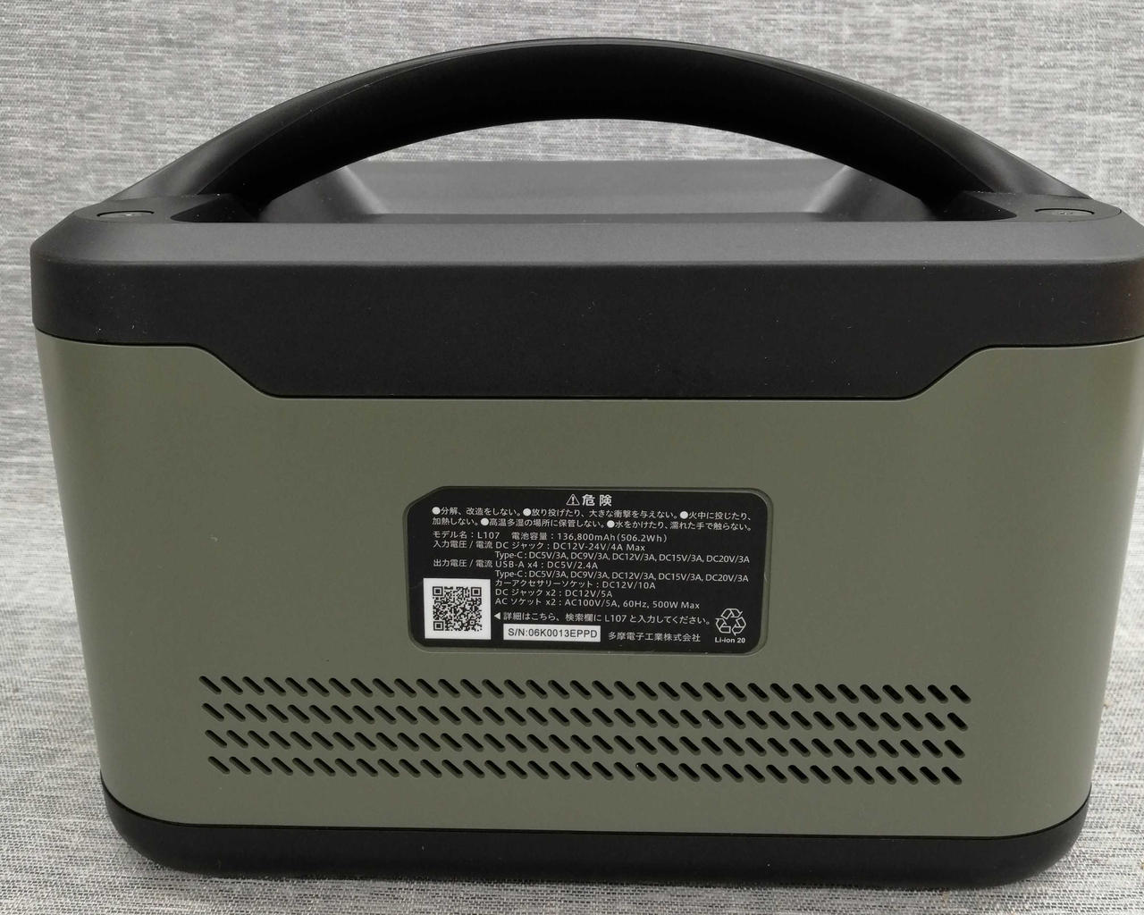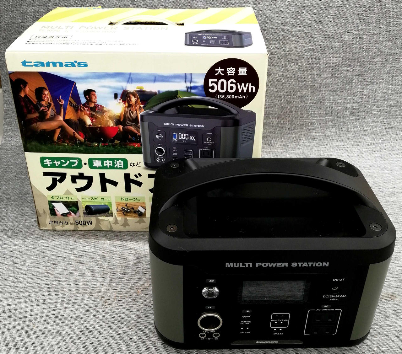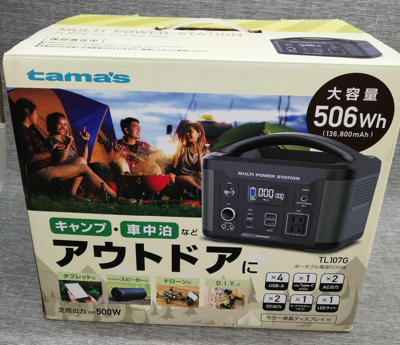充電池容量506Wh/136,800mAhタイプ USB-Aポート×4/USB-Cポート×1/DCソケット×1 |