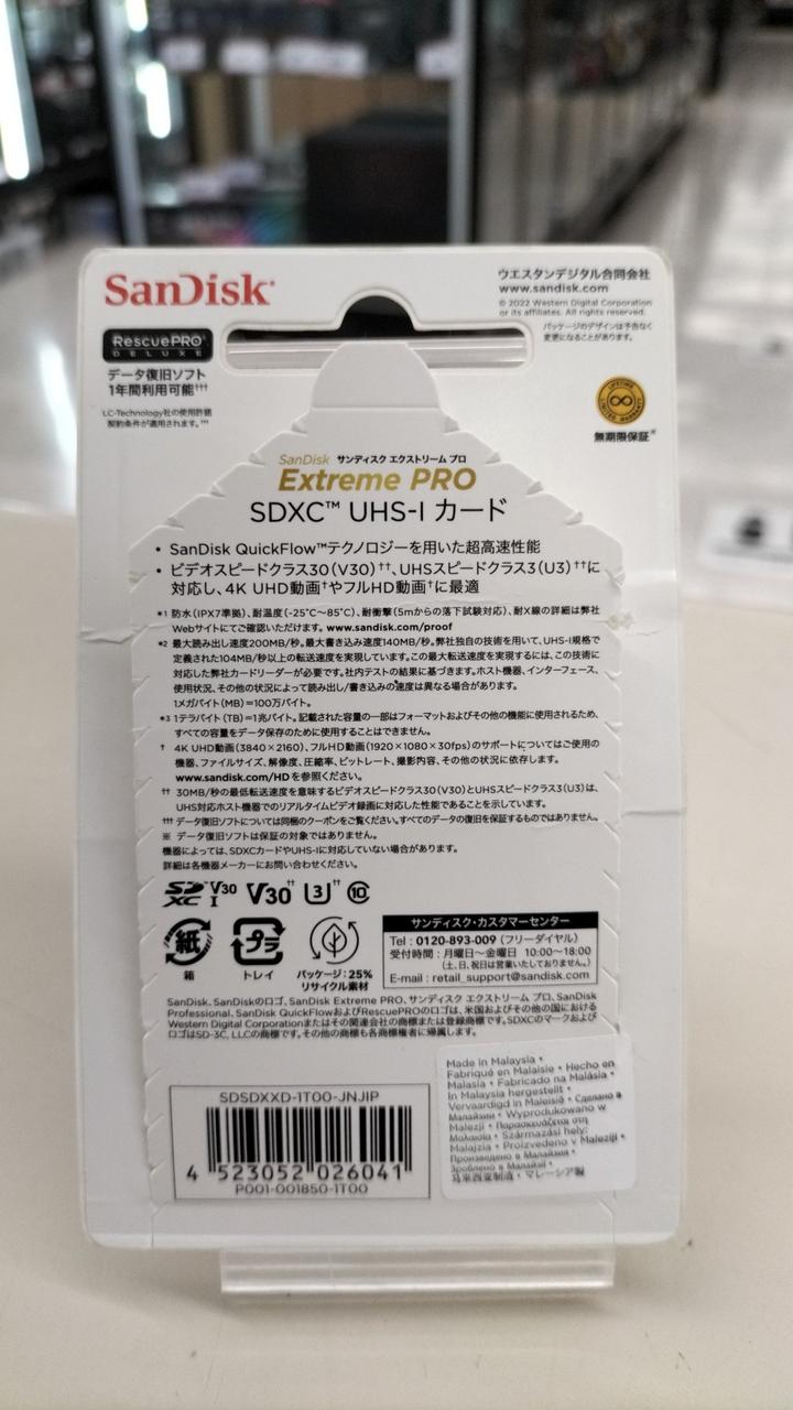 ビデオスピードクラス30(V30)、UHSスピードクラス3(U3)とCLASS10に対応し、高速連写や4K UHD動画の撮影に最適 |
