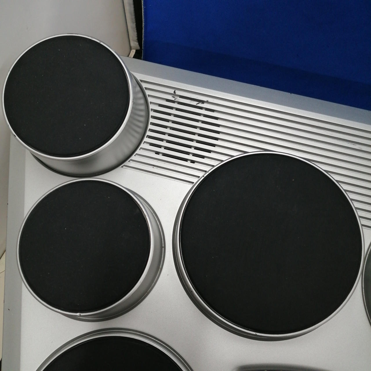 8個のパッドに加え、バスドラム、ハイハットとして使用できる2個のフットペダルも装備!! |