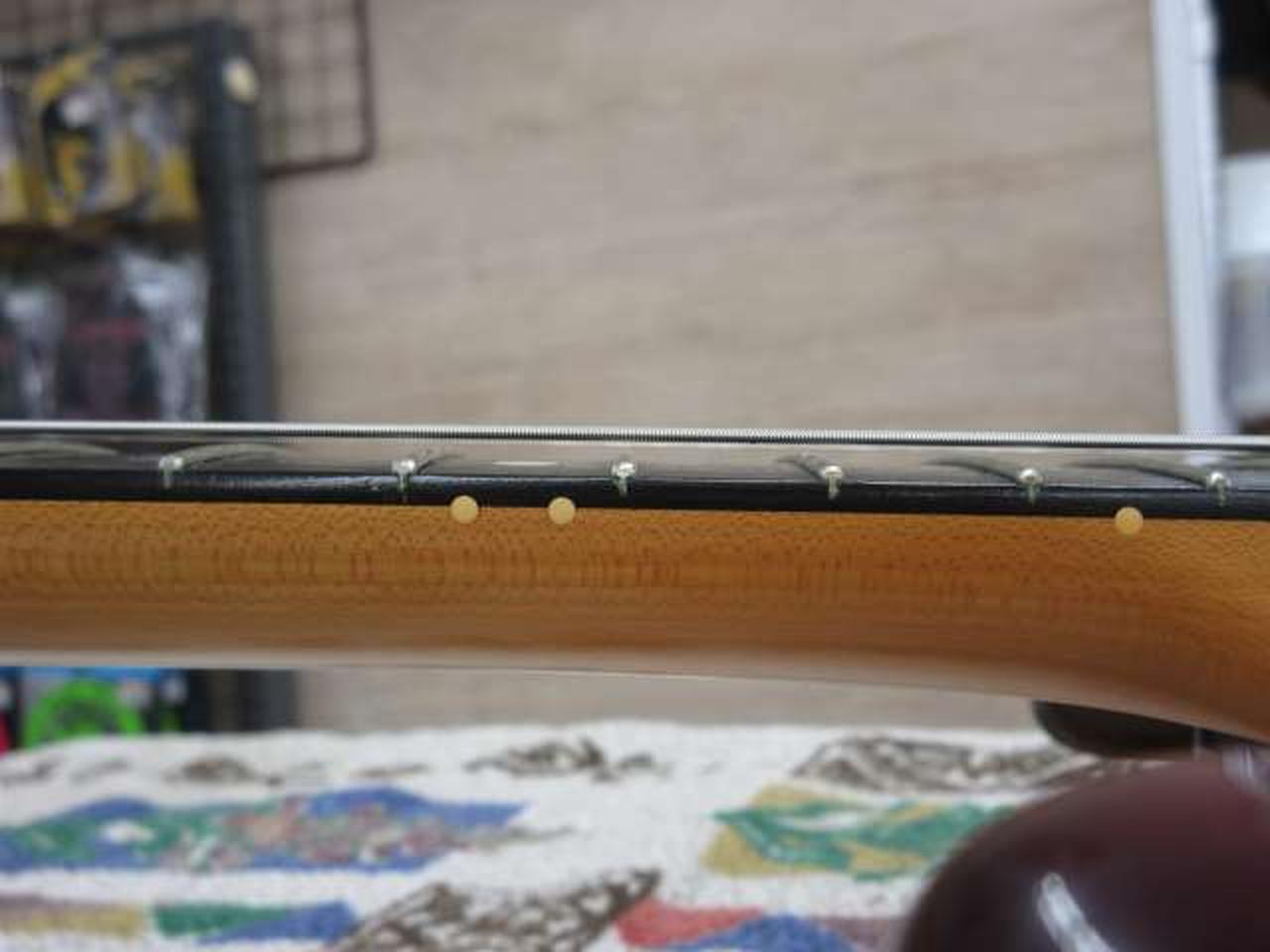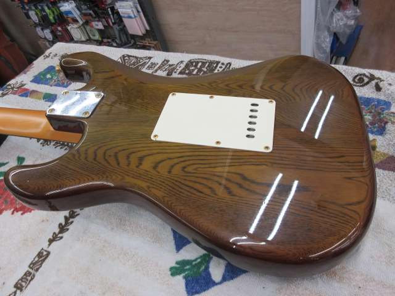 詳細なスペック情報等がありませんが、特徴的な木目と指板材からアッシュボディにエボニー指板を用いているかと思われます。 |
