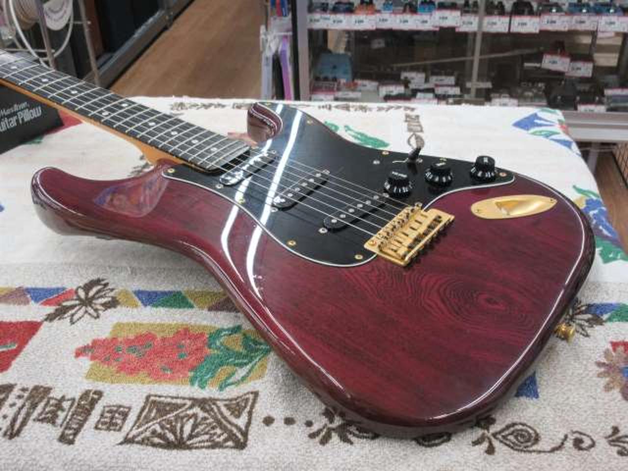 初期のbacchusのロゴのストラトタイプギター |