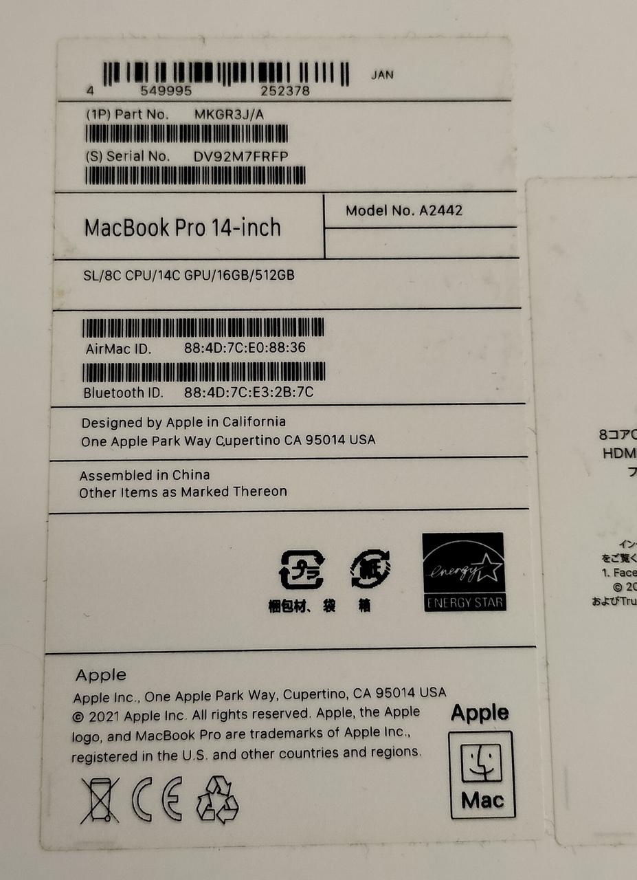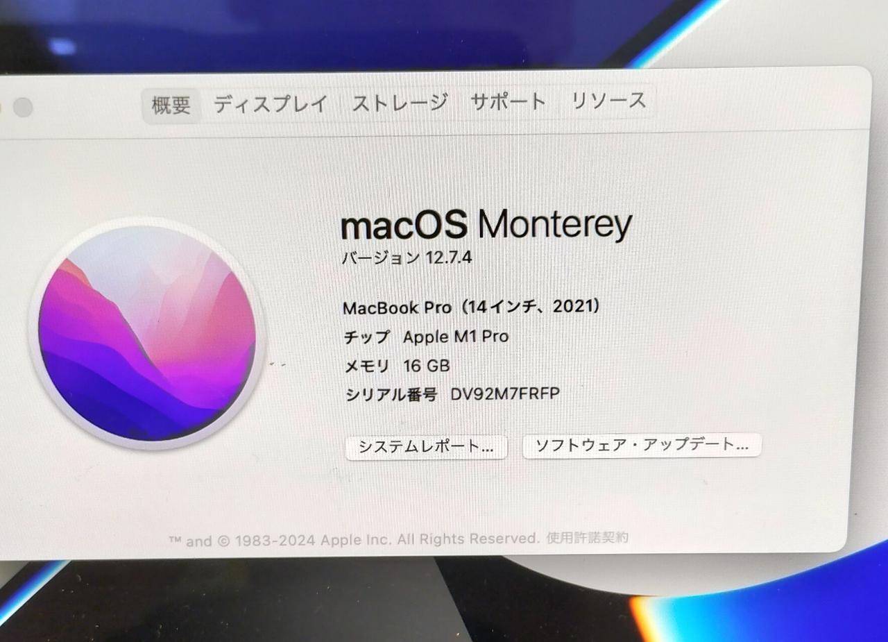 OS:MONTEREY12.7.4 CPU:APPLE M1 PROチップ/8コア |