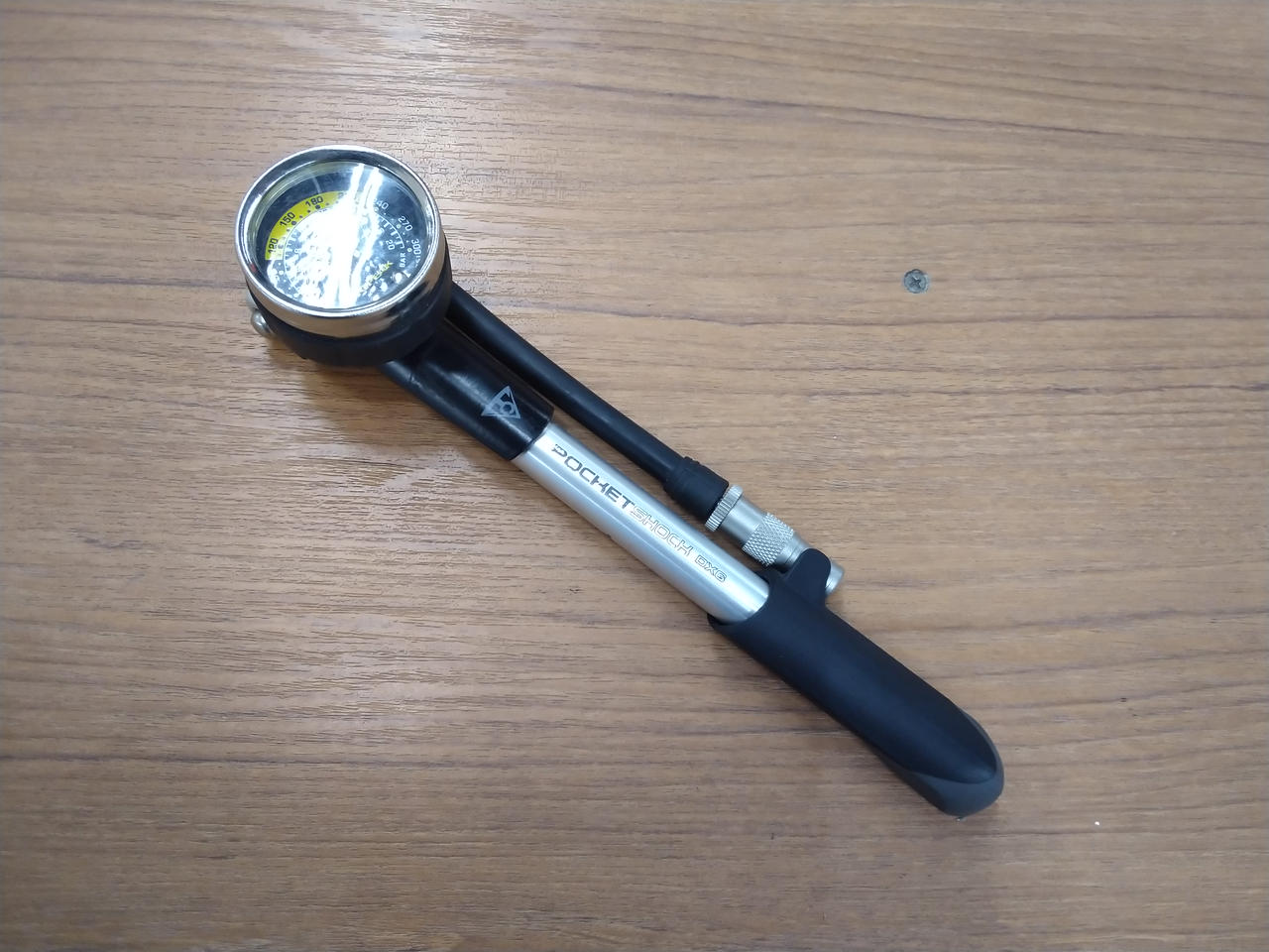 TOPEAKのサスペンションフォーク、リアサスペンション用のエアポンプになります。擦れや傷はございますが、圧力計、ポンプ共に正常に動作しております。