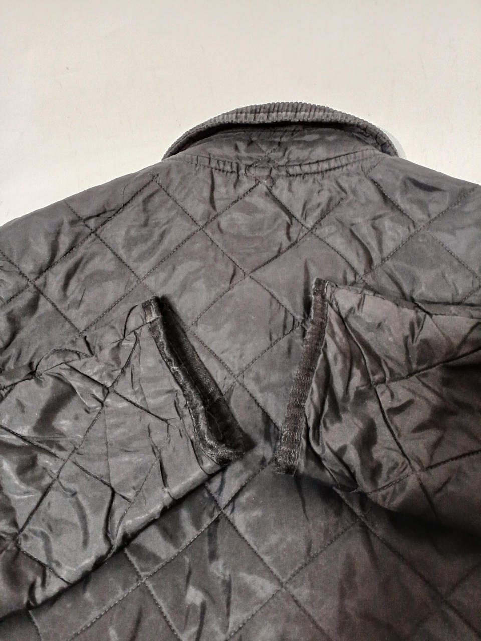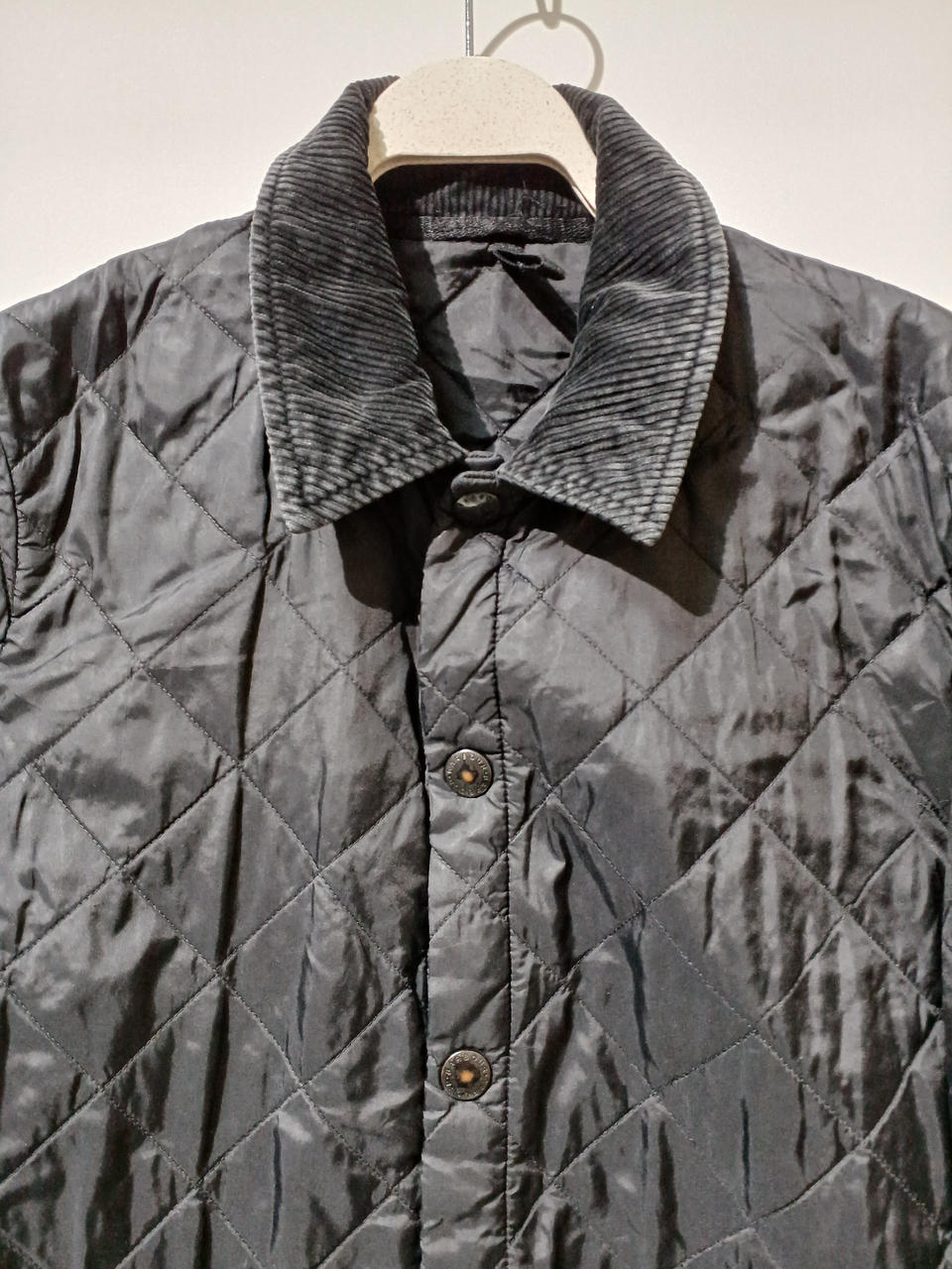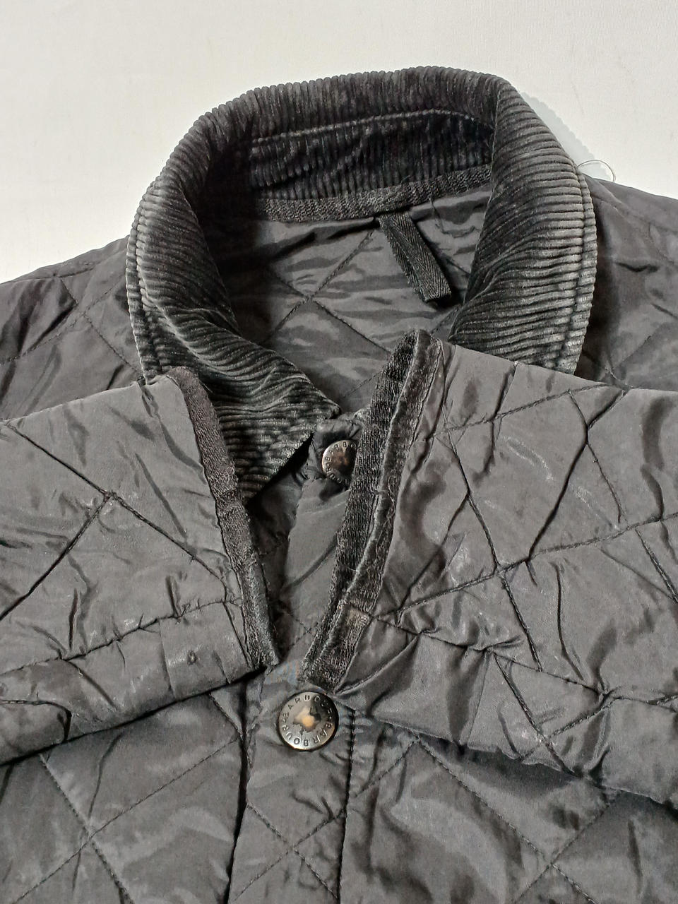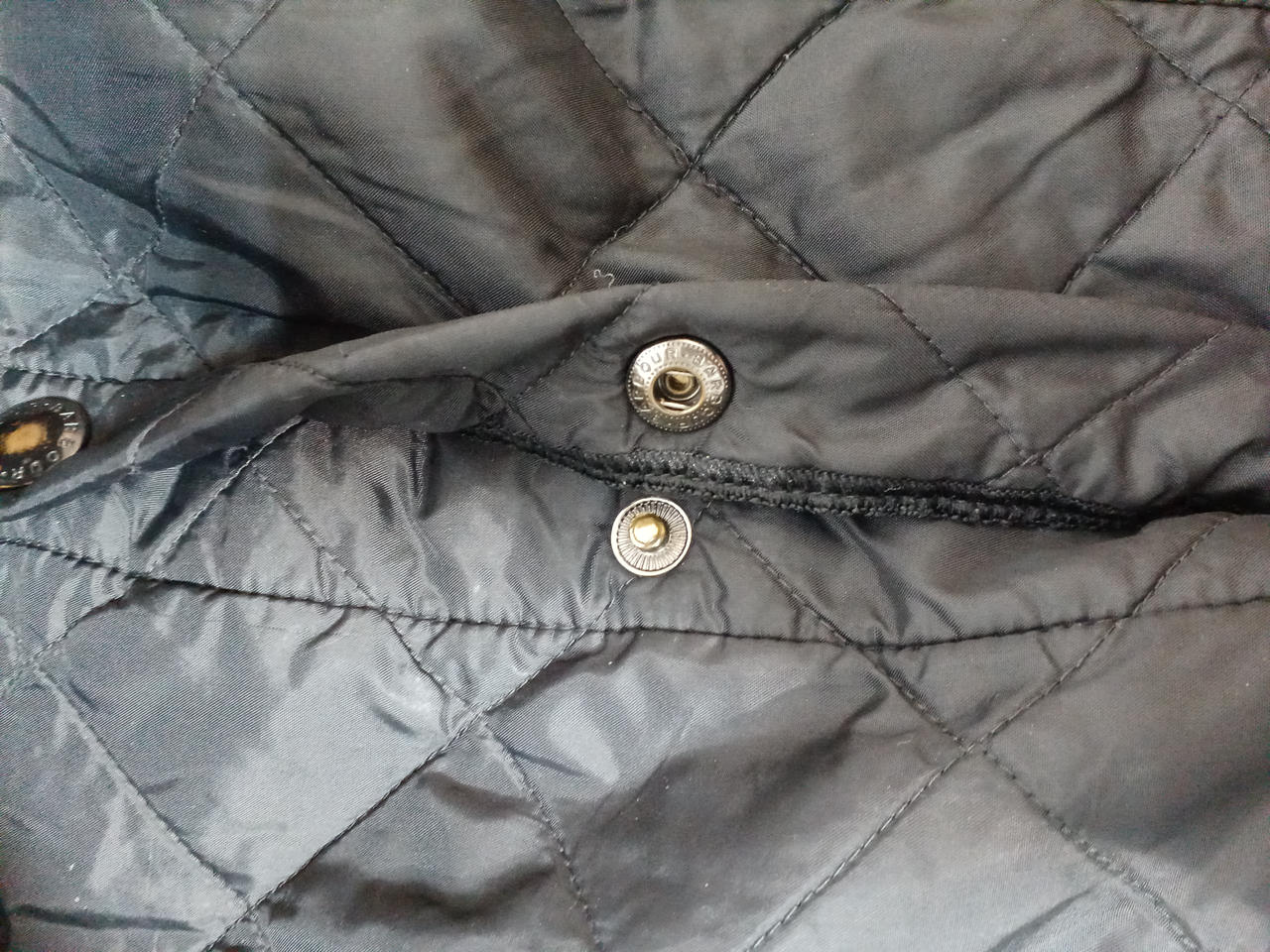 下から2個目のスナップが壊れてしまって閉まりません。スナップに色あせや裾部分に若干のシミ汚れございます。 |