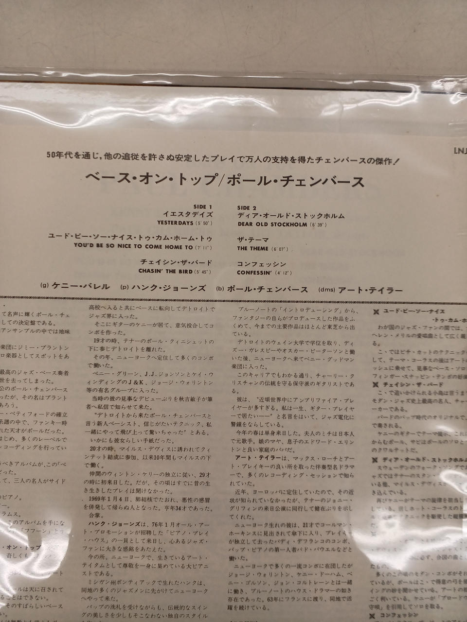 帯なし、ライナー付き ジャケット、ライナーに経年の傷み 盤面目立つキズ無し